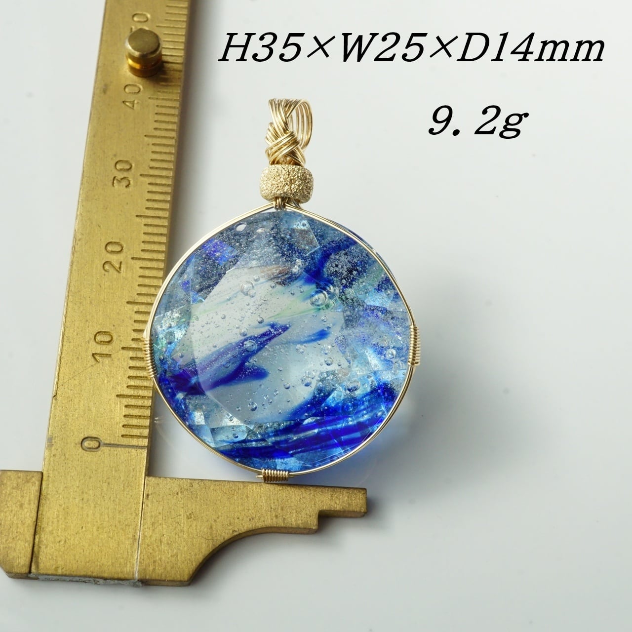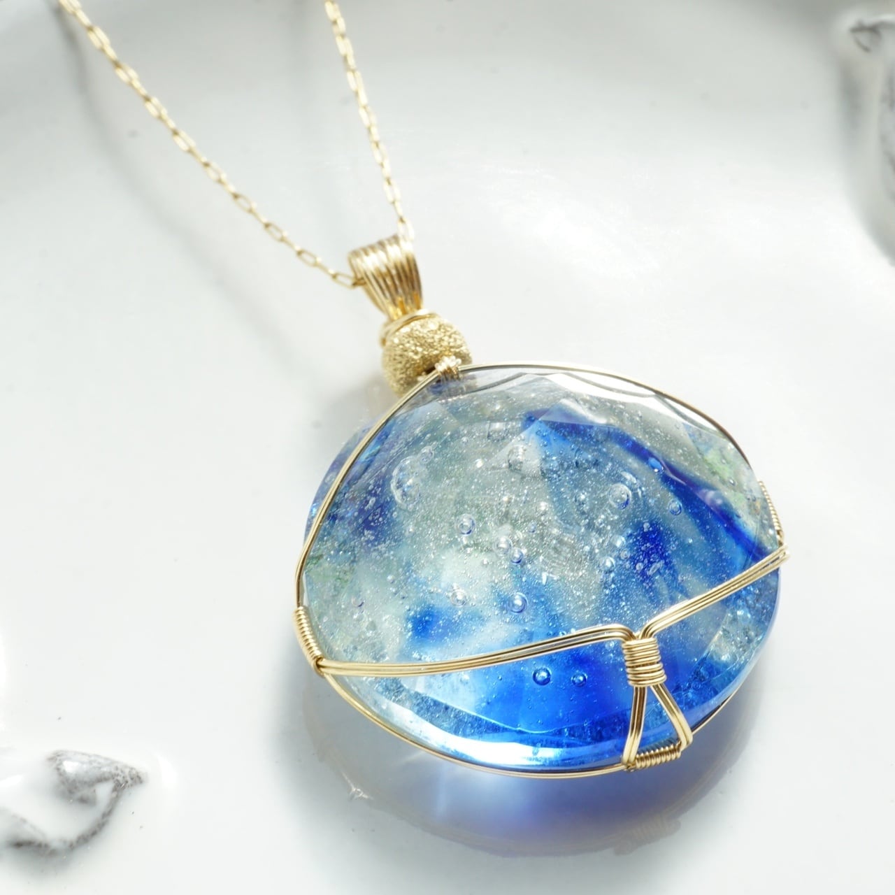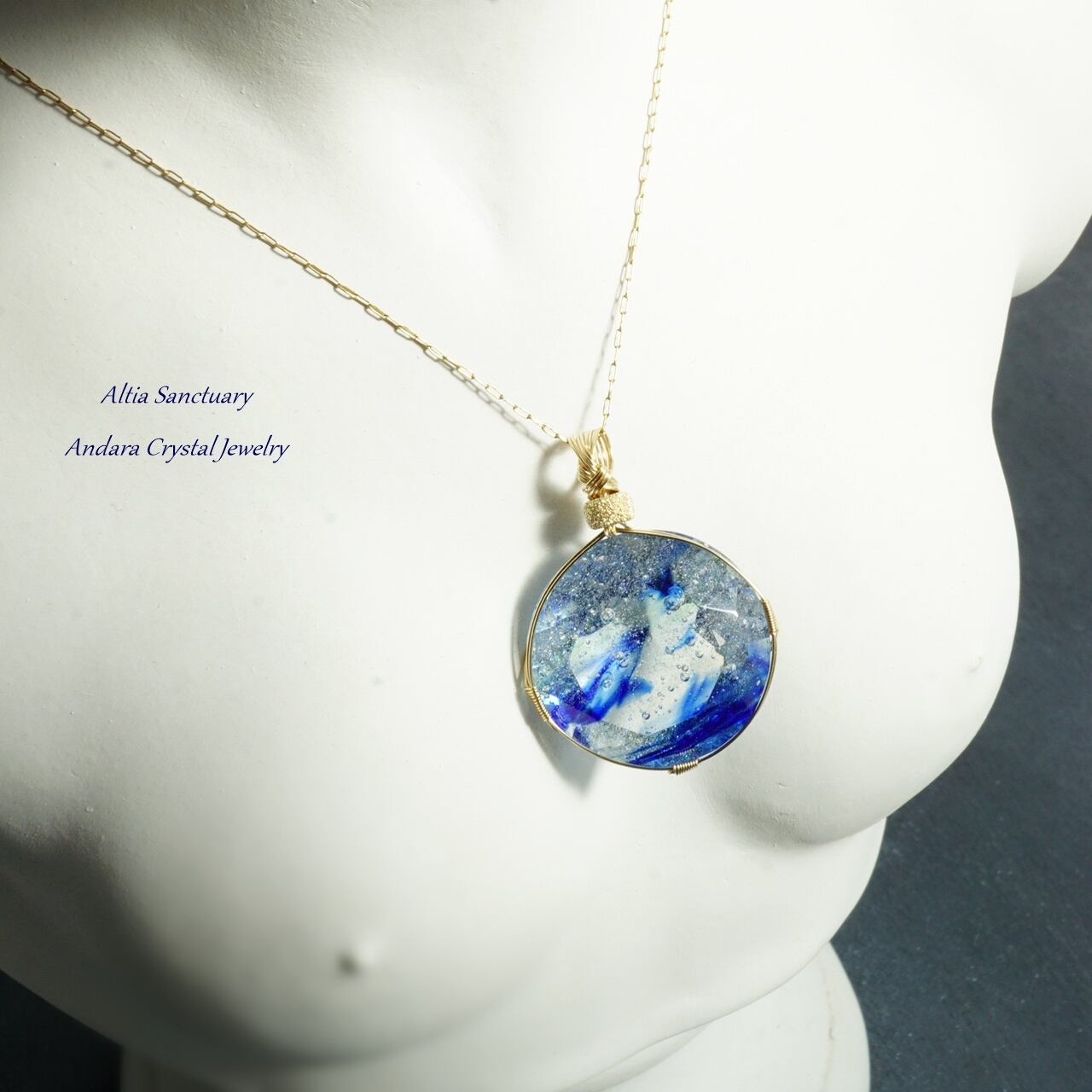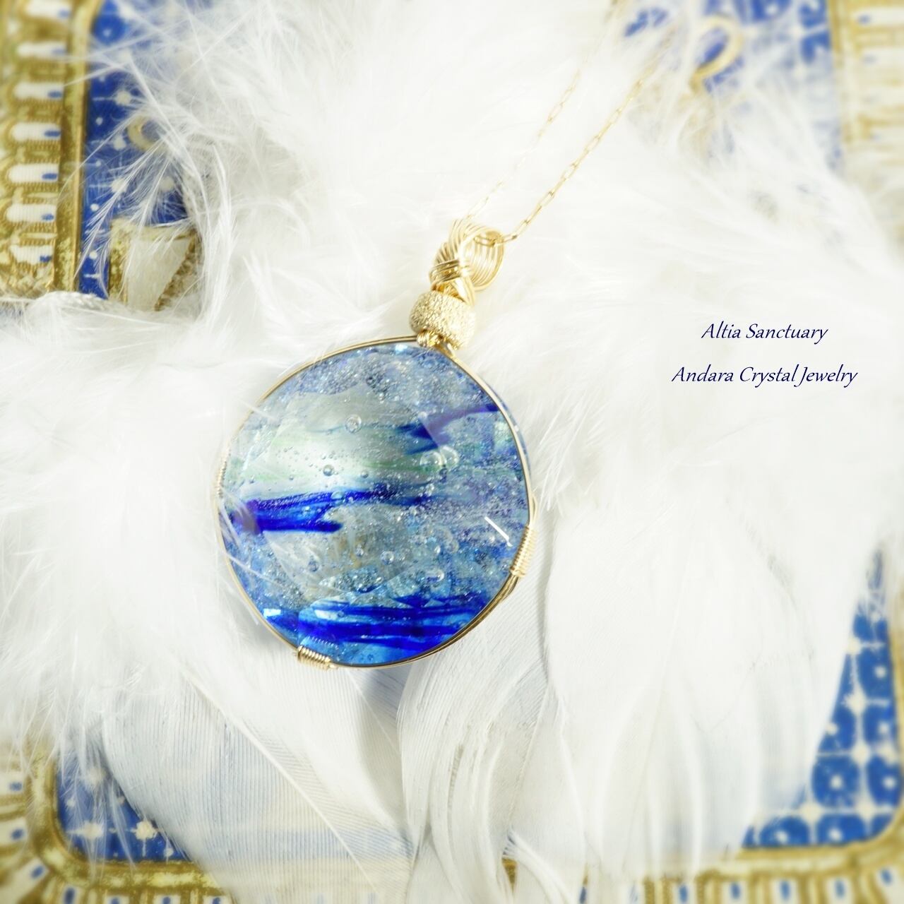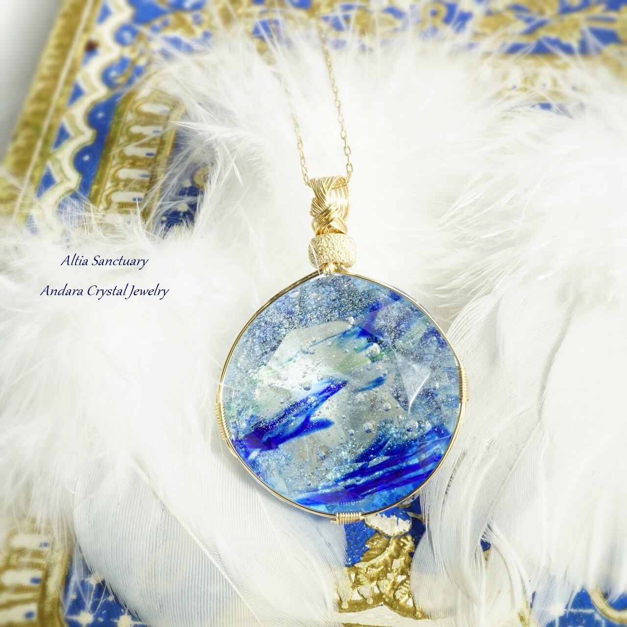 きらめく神秘的なマルチブルーアンダラクリスタルのダイヤモンドカット女神巻き®ペンダントです。