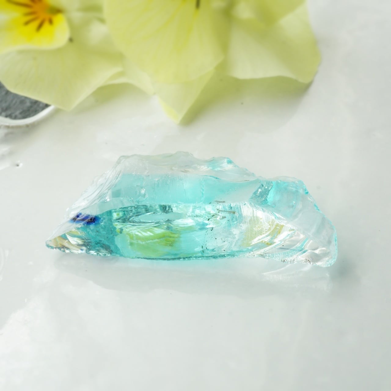 アンダラクリスタルは、黒曜石(オブシディアン)に似たガラス質で、ゴールド・シルバー・イリジウム・ロジウム・クロミニウム・プラチナなどの単原子成分が含まれており、レインボーの7色以上の美しいカラーを放つ魅力を持っています。