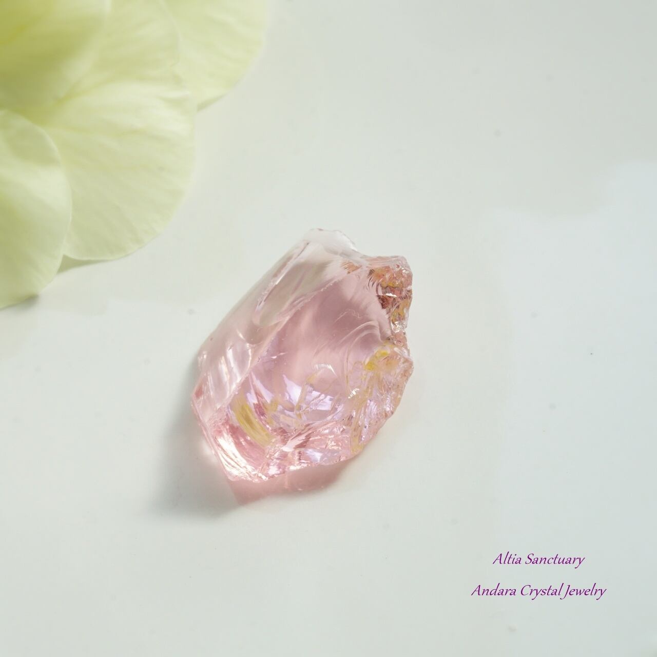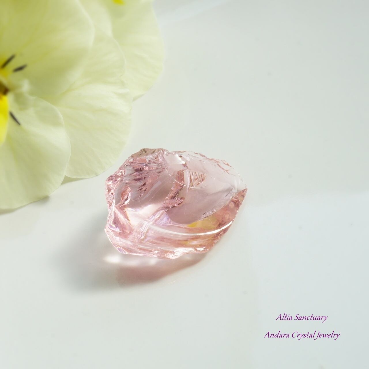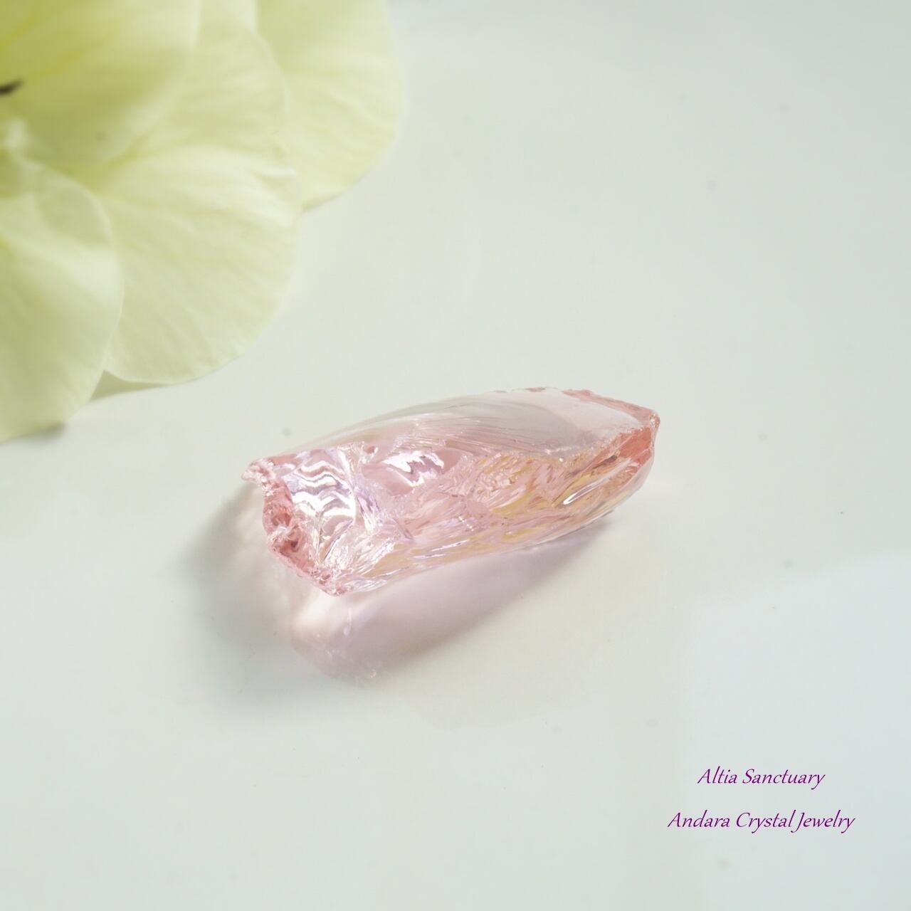 新色「パパラチア」は、蓮の花びらのようなアンダラクリスタルで、神聖で可憐なオレンジピンク色のアンダラクリスタルです。こちらは、可憐なピンク色の桜の花びらのような「パパラチア」アンダラクリスタルです。