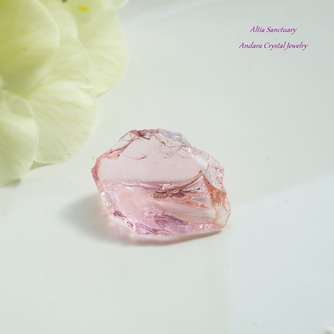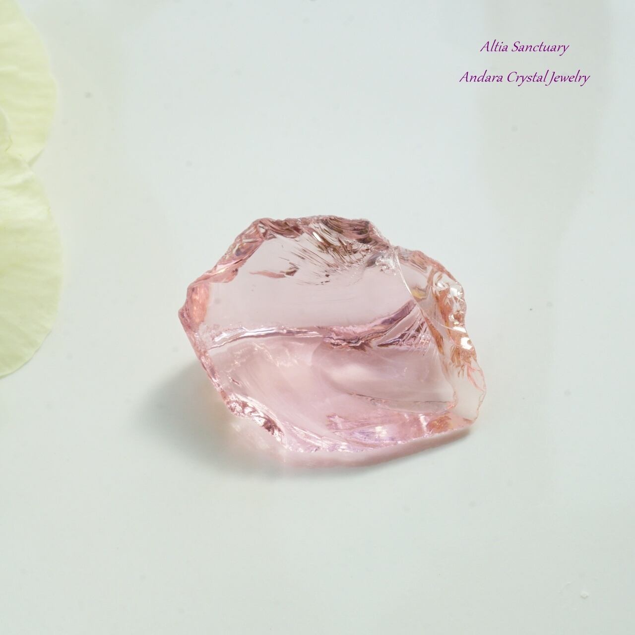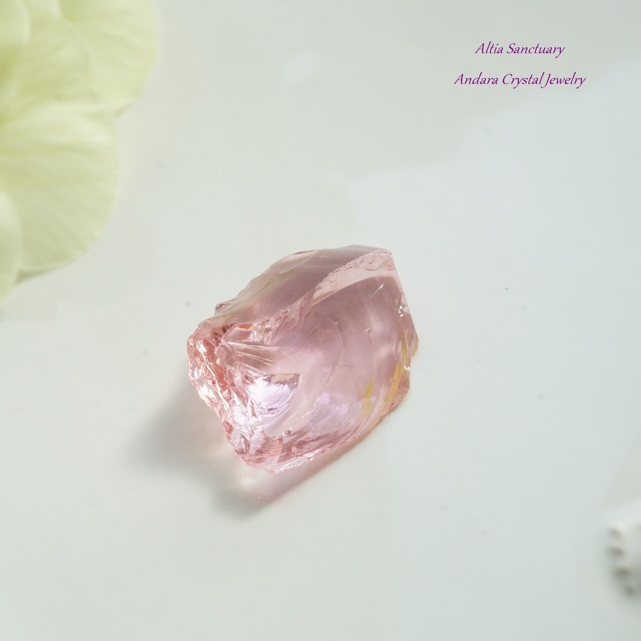 新色「パパラチア」は、蓮の花びらのようなアンダラクリスタルで、神聖で可憐なオレンジピンク色のアンダラクリスタルです。こちらは、可憐なピンク色の桜の花びらのような「パパラチア」アンダラクリスタルです。