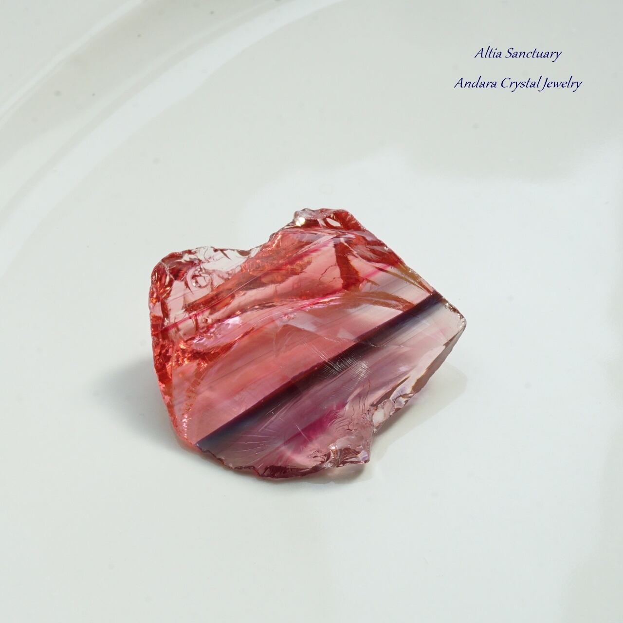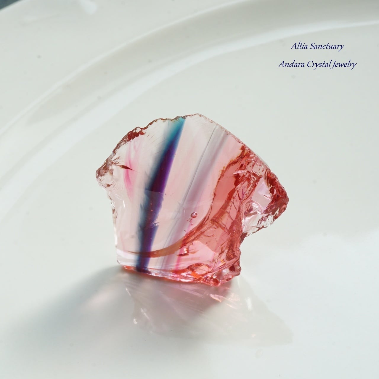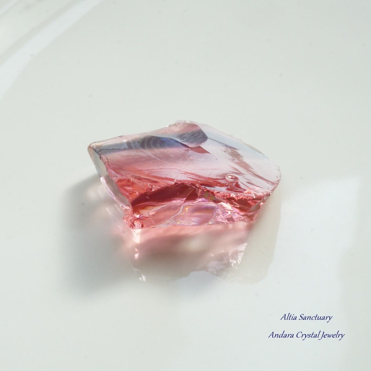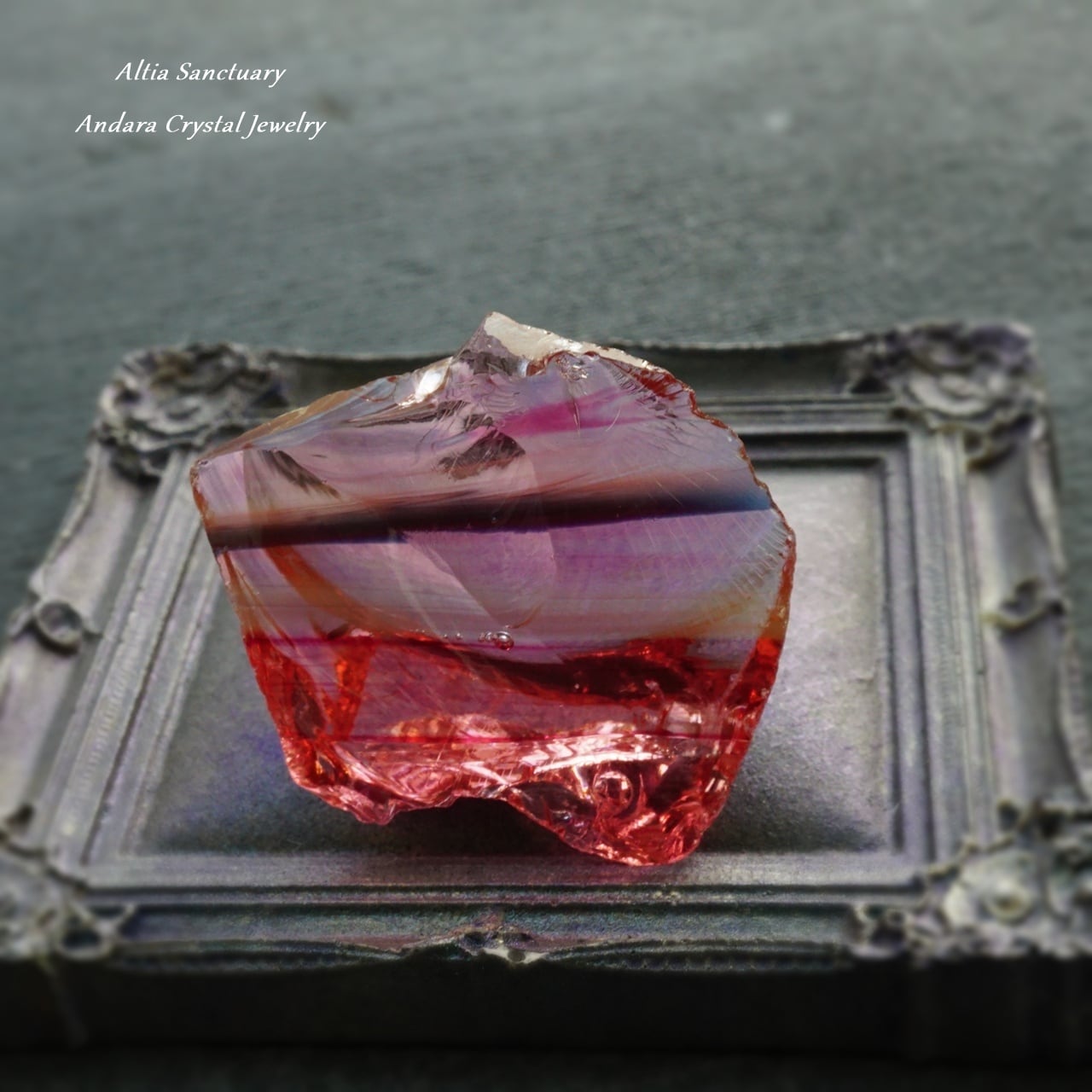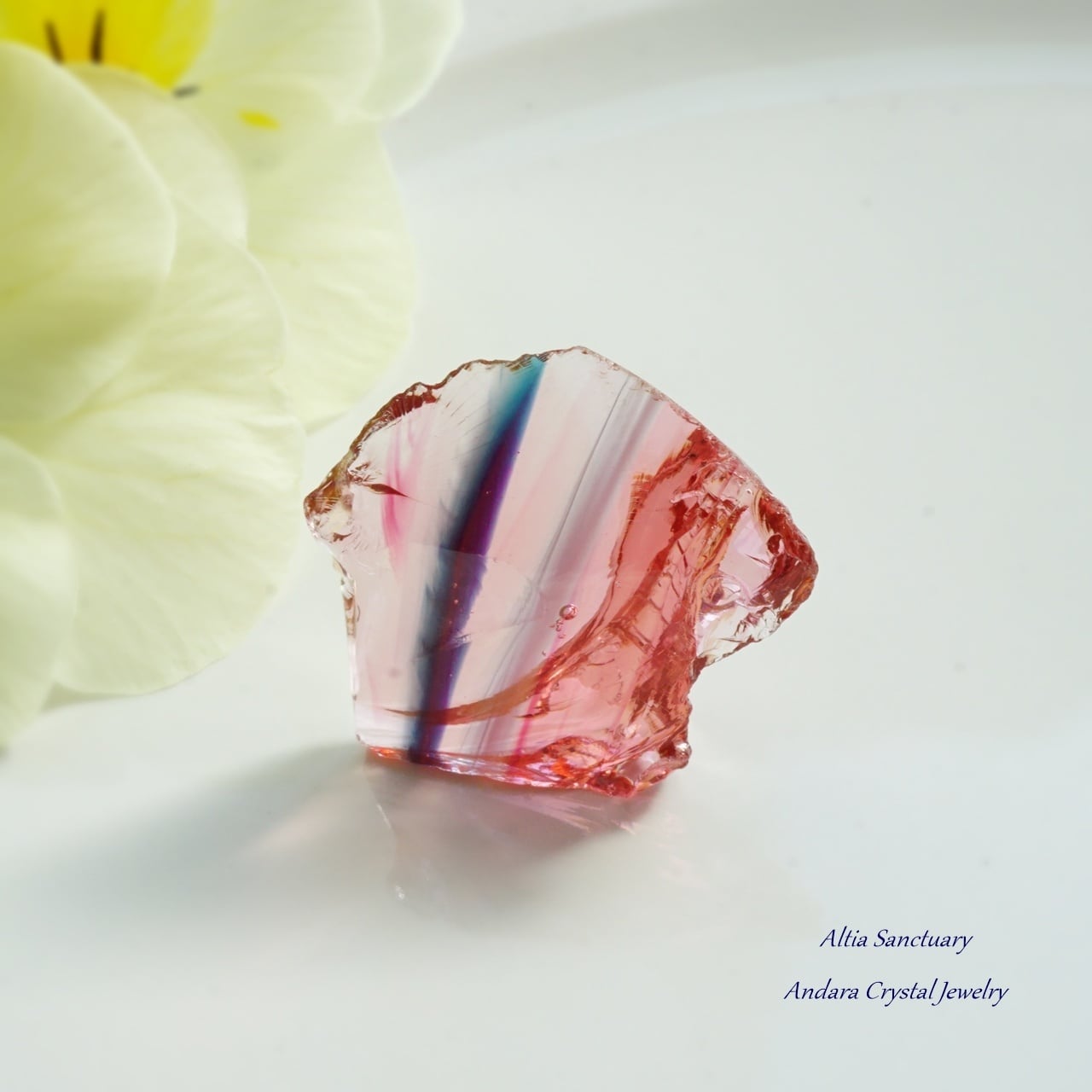 このアンダラは、ピンクの色調とゴールドのハイライトを持つ「ソフィア」に、「スターライトサファイア」や「ヴァイオレットソブリンアメジスト」等、様々な特性が含まれる美しい希少なアンダラクリスタルです。