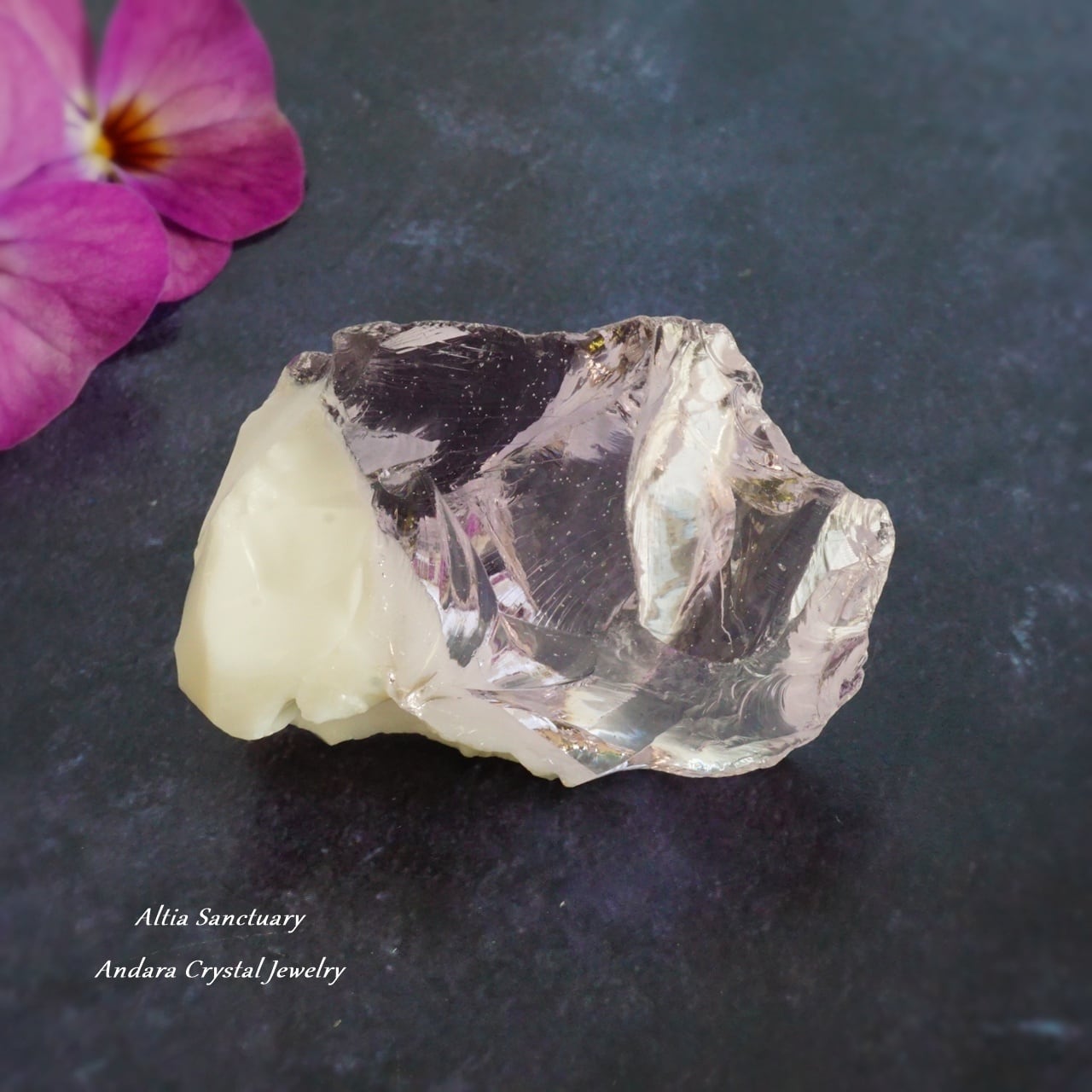 超レア!バイカラーアンダラクリスタル(アセンダントライラック/パステルアイス)虹入り原石 22.9g-1402