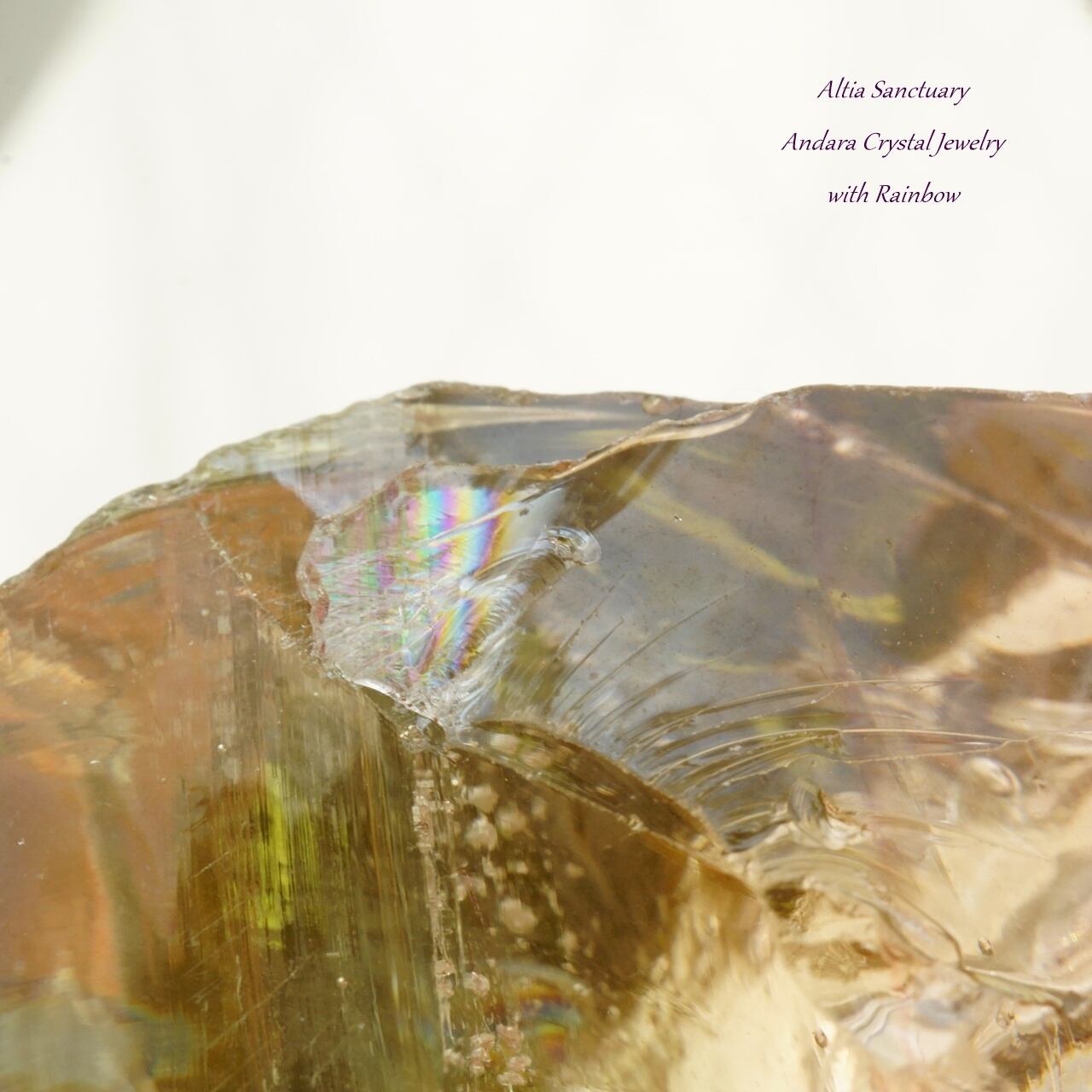 アンダラクリスタルは、黒曜石(オブシディアン)に似たガラス質で、ゴールド・シルバー・イリジウム・ロジウム・クロミニウム・プラチナなどの単原子成分が含まれており、レインボーの7色以上の美しいカラーを放つ魅力を持っています。