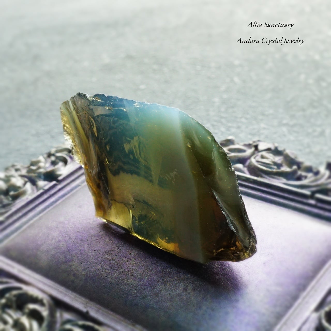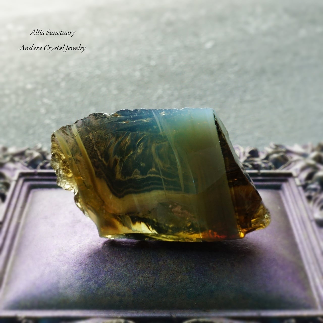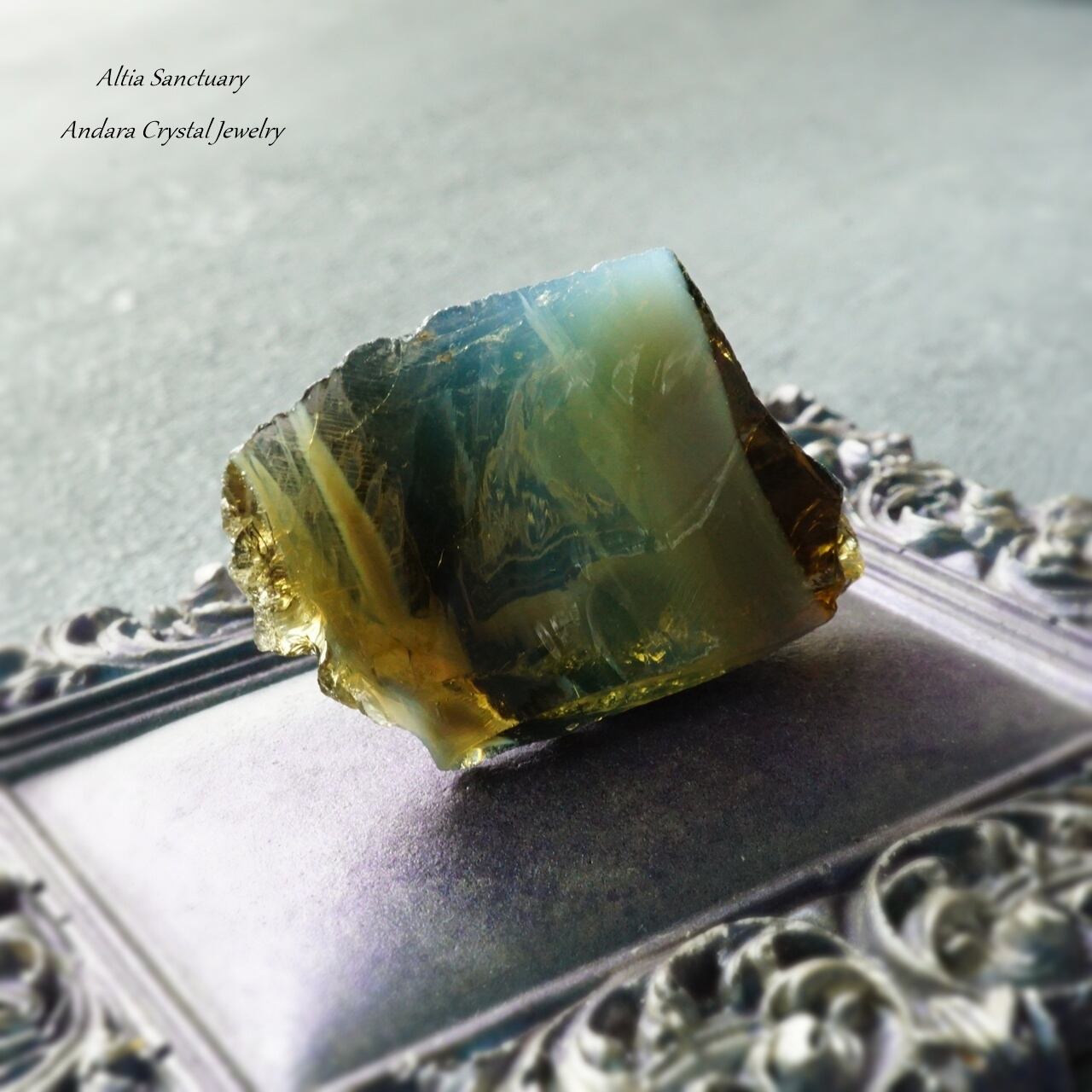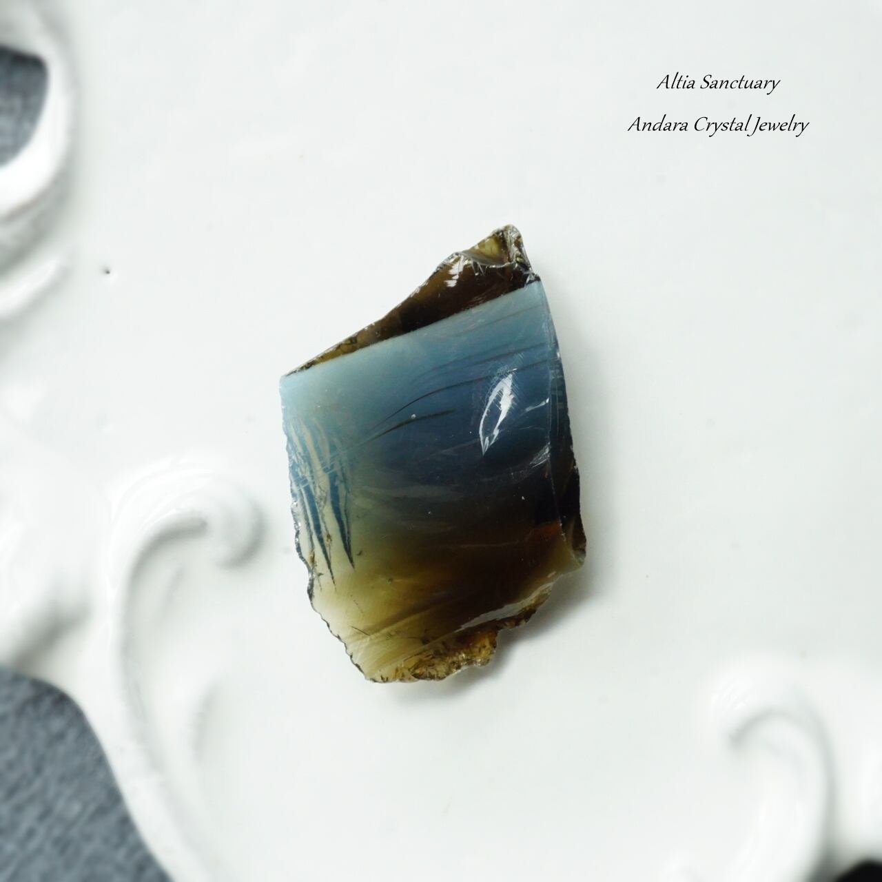 アンダラクリスタルは、黒曜石(オブシディアン)に似たガラス質で、ゴールド・シルバー・イリジウム・ロジウム・クロミニウム・プラチナなどの単原子成分が含まれており、レインボーの7色以上の美しいカラーを放つ魅力を持っています。