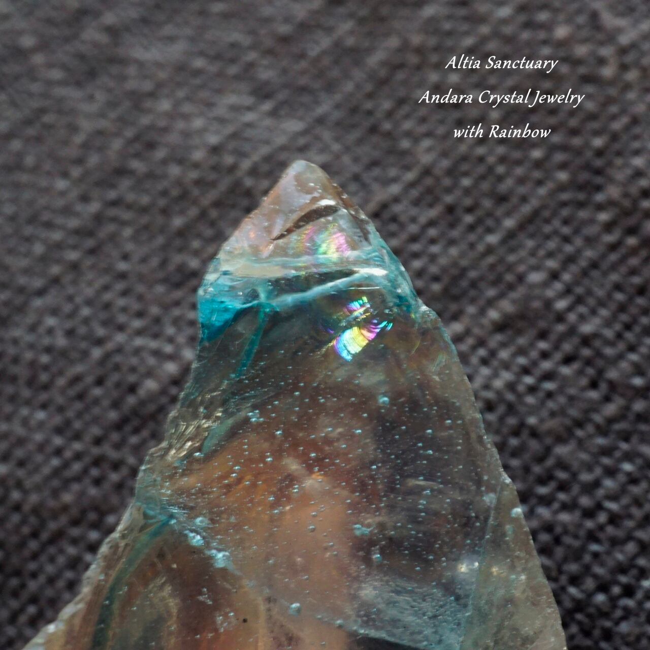 アンダラクリスタルは、黒曜石(オブシディアン)に似たガラス質で、ゴールド・シルバー・イリジウム・ロジウム・クロミニウム・プラチナなど、単原子の成分が含まれているためレインボーの7色 各チャクラの7色以上の多様な美しいカラーが存在します。
