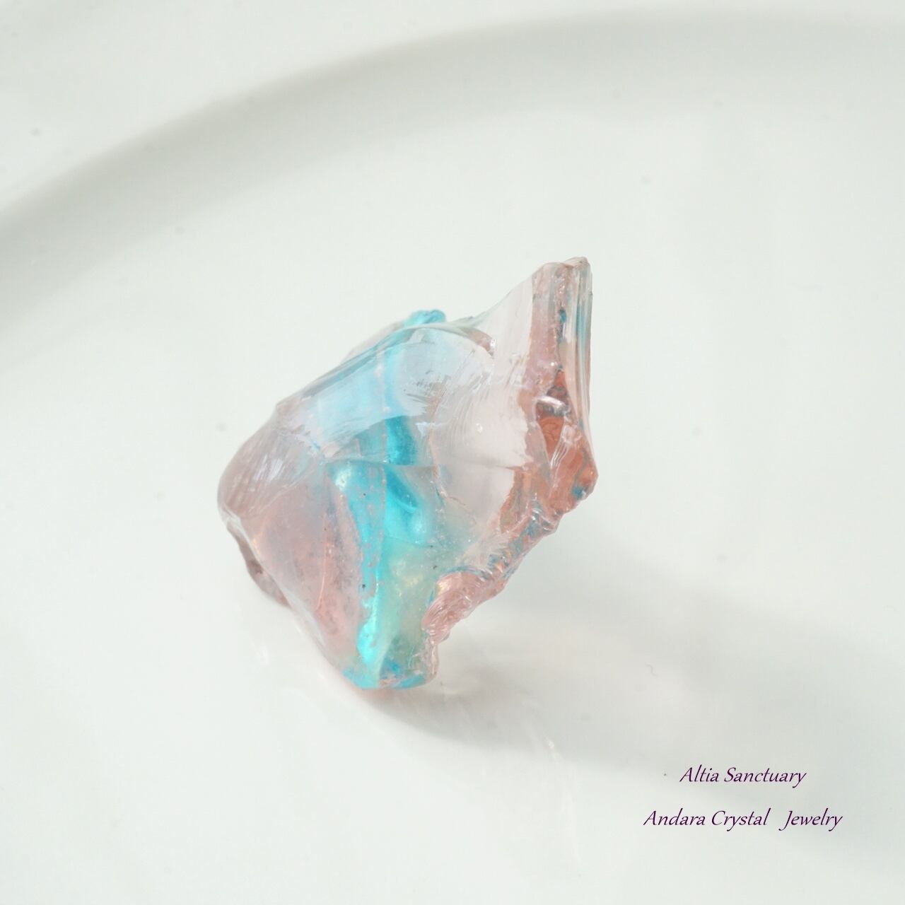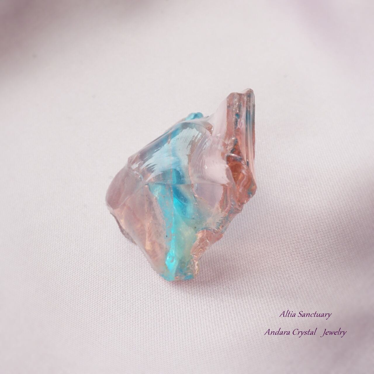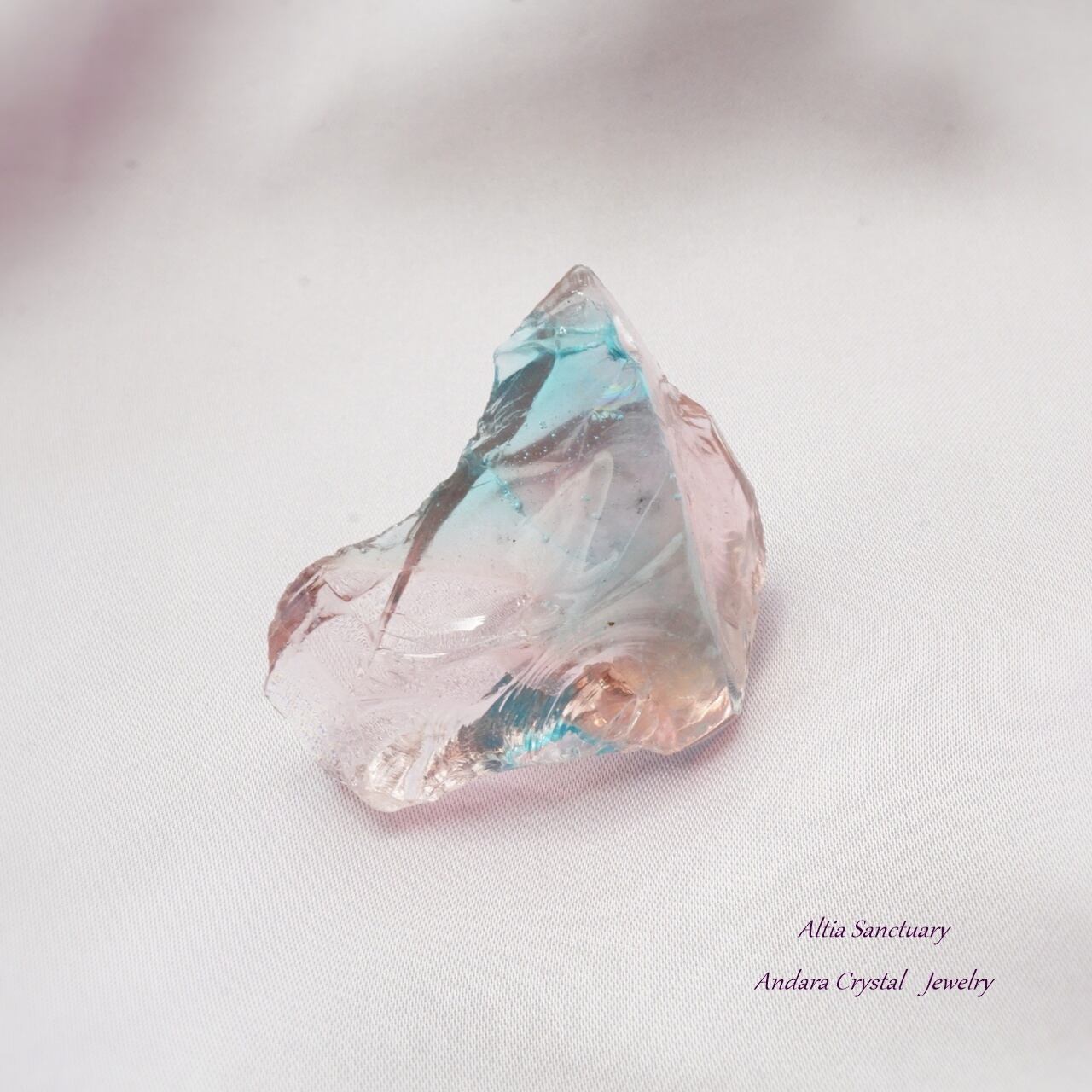 ピンク×ブルーの融合が魅力的なアンダラクリスタルは、「HGWピンク」に「エレクトリックブルー」と「エンジェルオーラ」が入った、珍しいバイカラーのアンダラクリスタルです。レインボーが優しく輝いています。