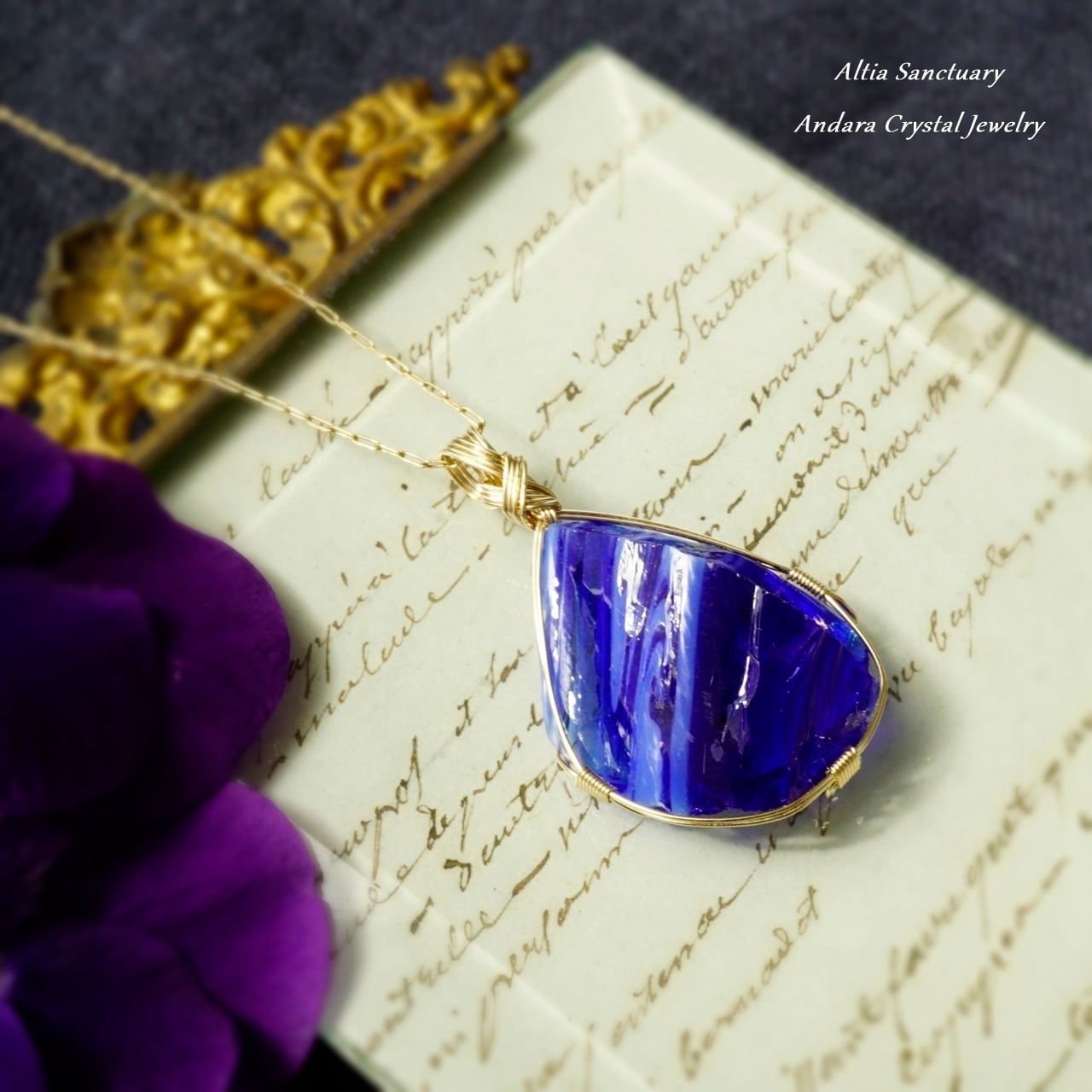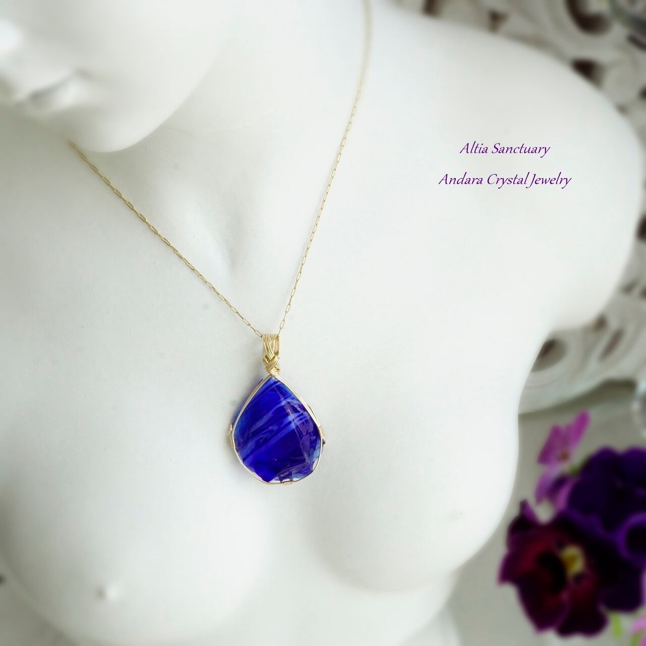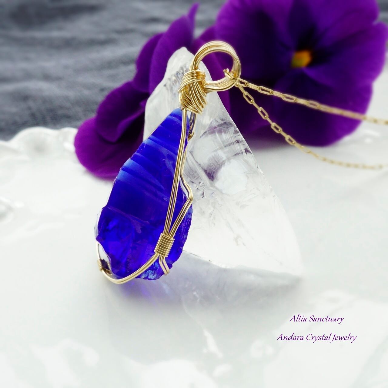 原石でも美しいロイヤルブルーのアンダラクリスタルを純粋な輝きを最大限に輝かせる女神巻き®に仕立てました。ゴールドがよりロイヤルな気品を引き立てます。