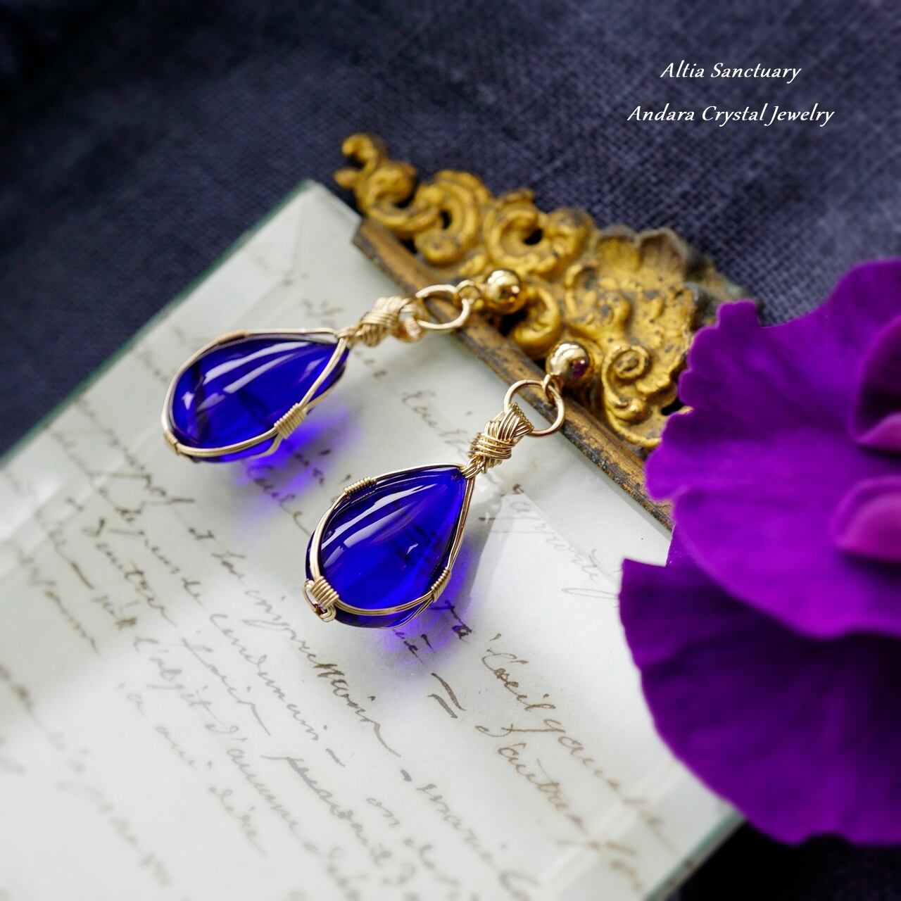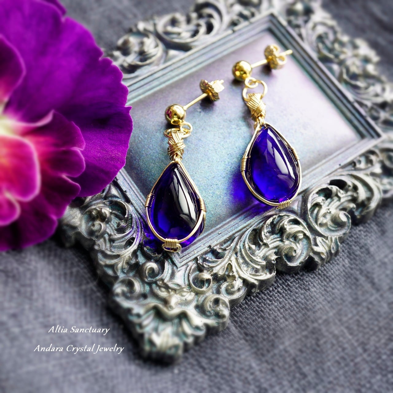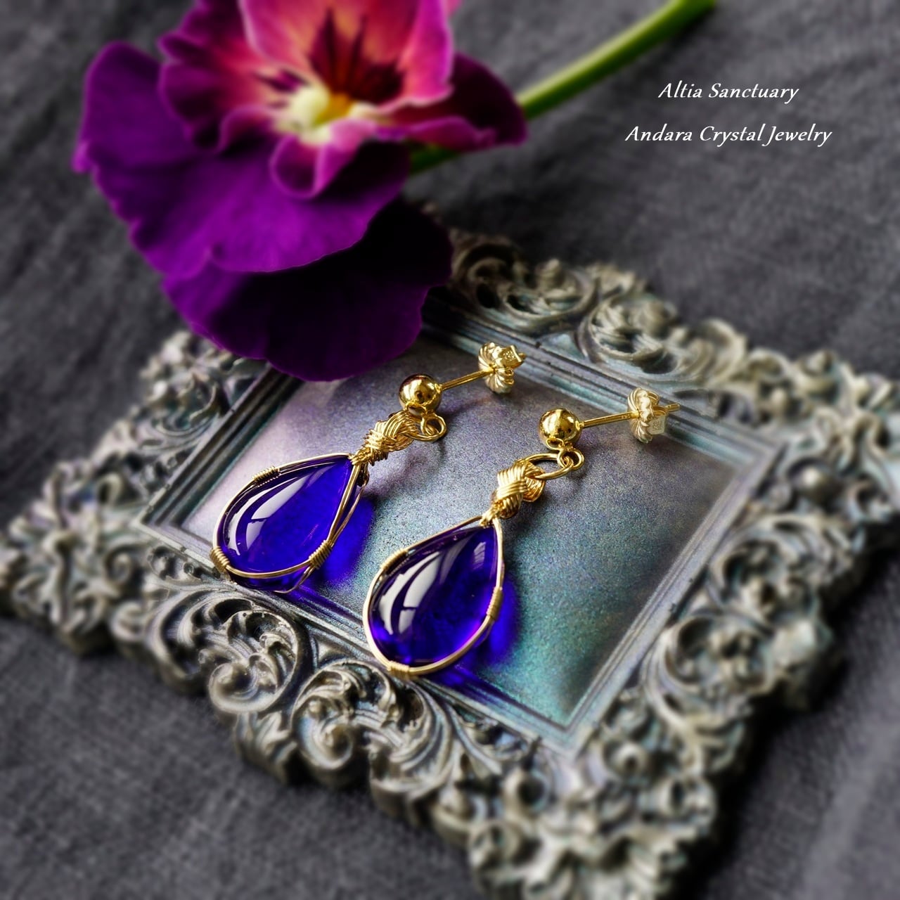 【H様オーダー】加工代~~アンダラクリスタル(タンザナイトファイヤー)しずく両面カボション 女神巻き®ピアス