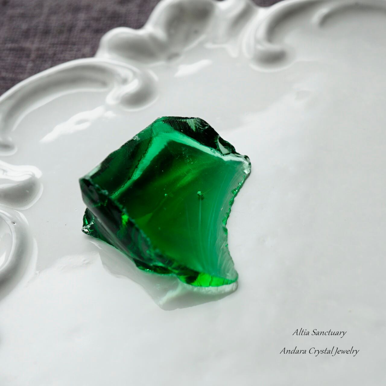 深いエメラルドグリーンが美しい「エメラルドシフト」です。エメラルドグリーンの深淵の世界に引き込まれます。ペンダントサイズの小さめピースになります。