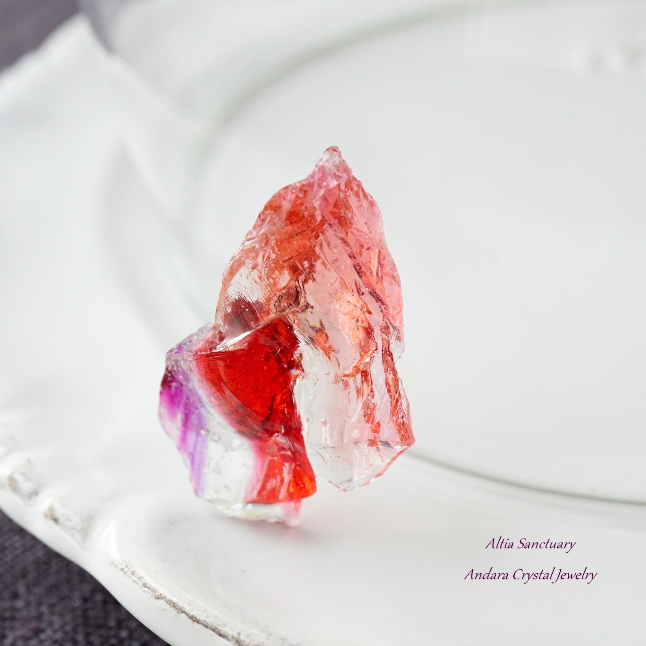 ピンクがかったアメジストにゴールドのハイライトが入ったソフィア・アンダラは、源の本質と精神を表現しています。この普遍的な精神と原理は、強力な個人的な次元、つまりインスピレーションの次元でもあります。