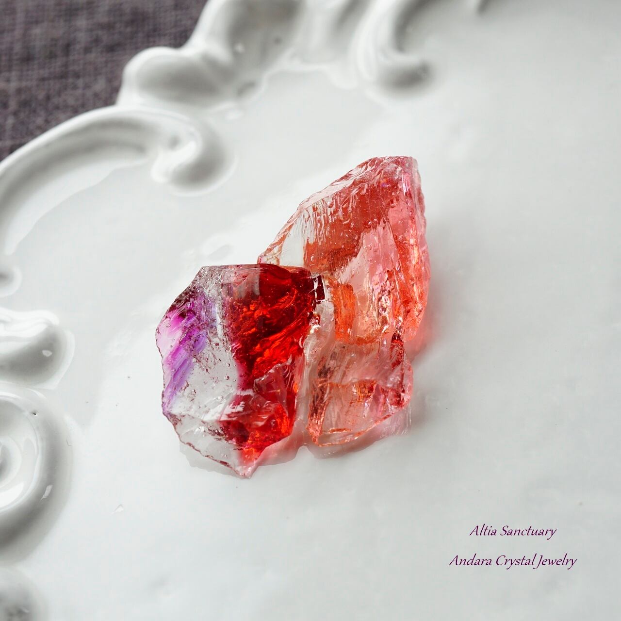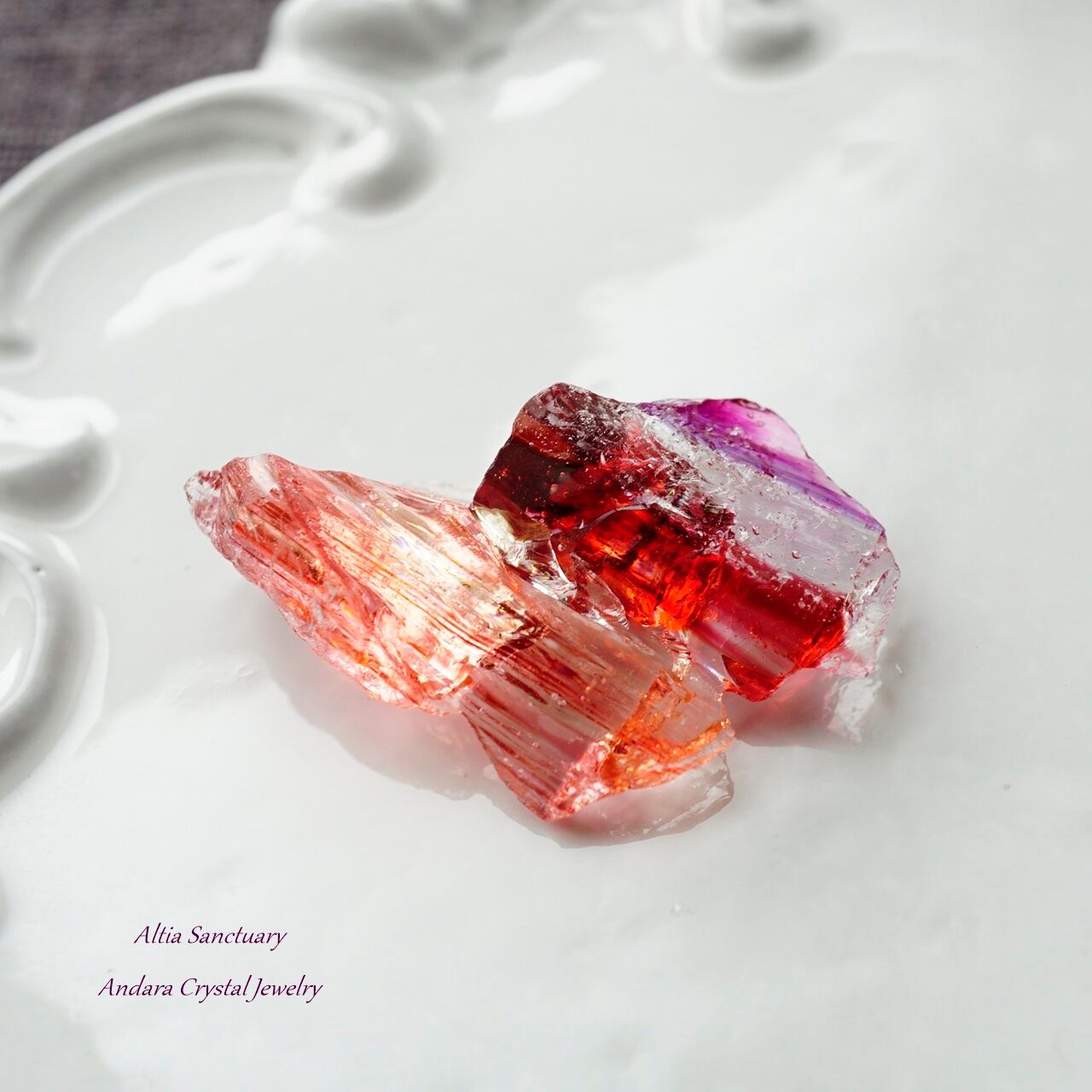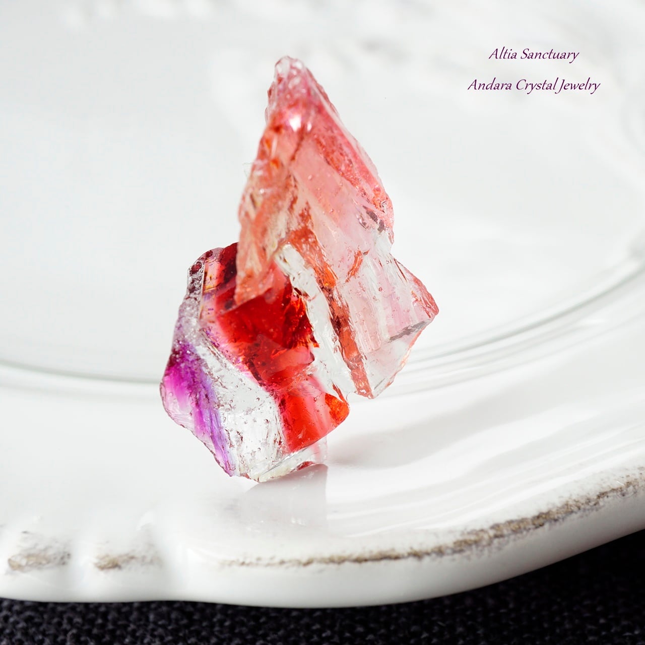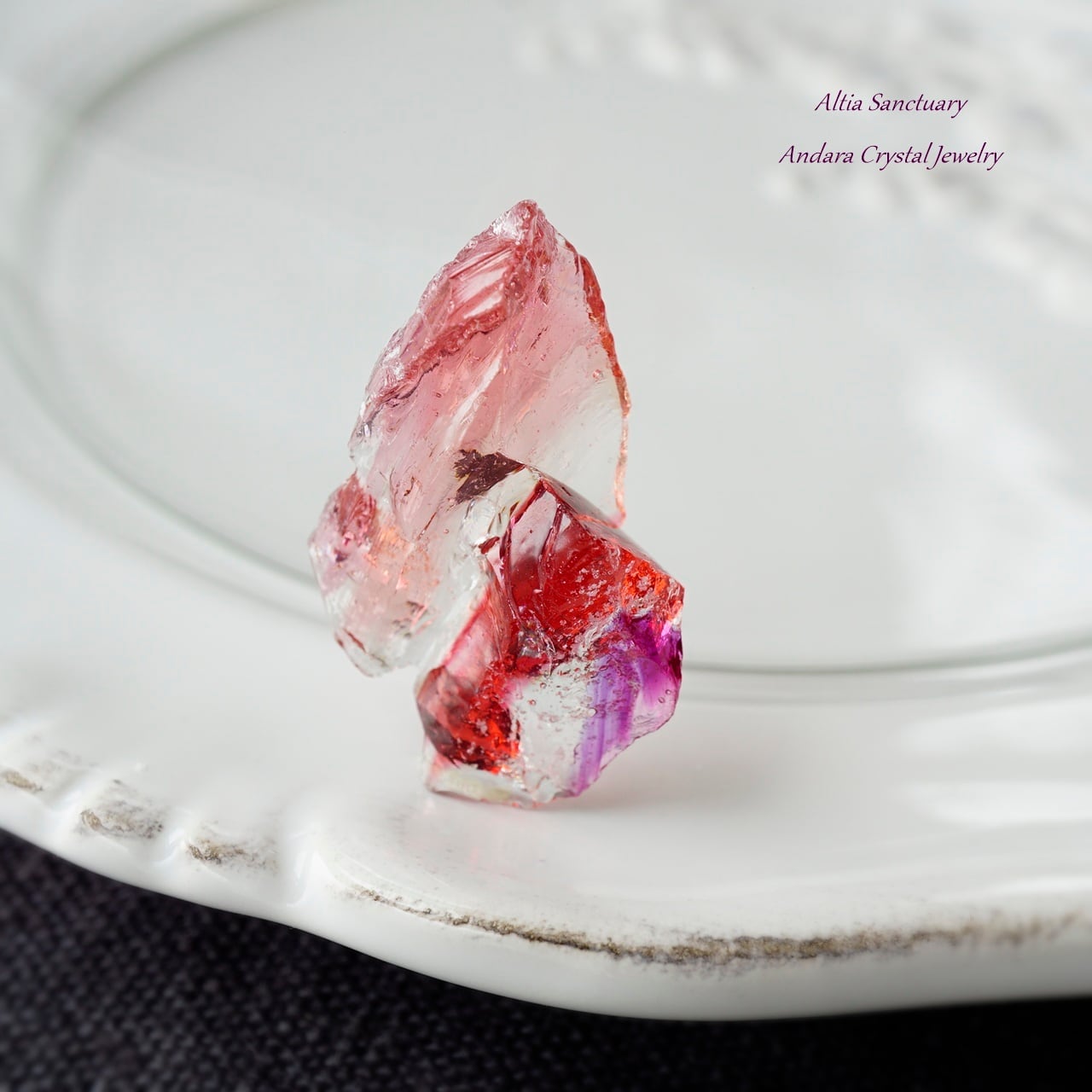 こちらのアンダラは、ピンクの色調の「ソフィア」に「ラズベリー」や「ヴァイオレットソブリンアメジスト」等、様々な特性が含まれる美しい希少なアンダラクリスタルです。
