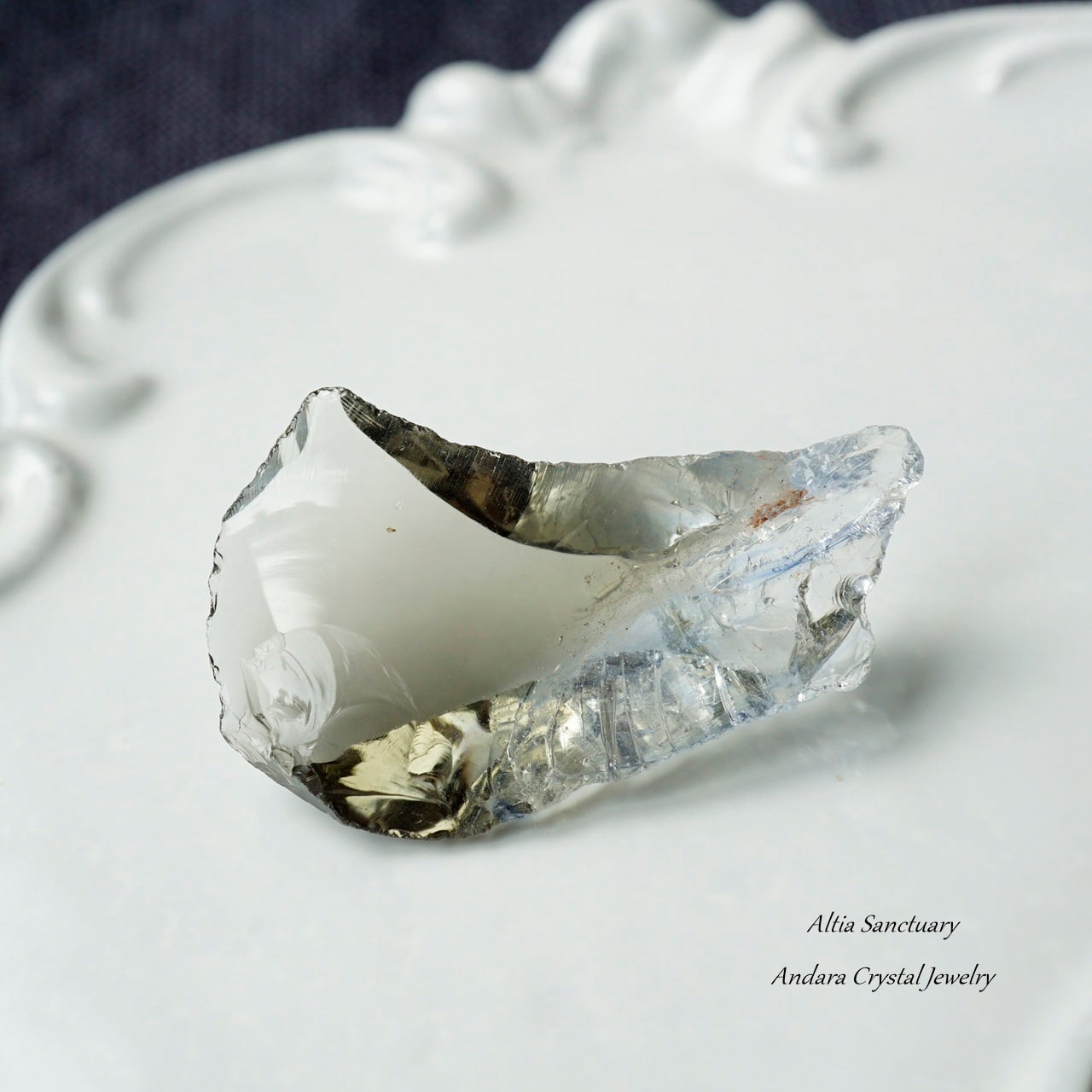 アンダラクリスタルは、黒曜石(オブシディアン)に似たガラス質で、ゴールド・シルバー・イリジウム・ロジウム・クロミニウム・プラチナなどの単原子成分が含まれており、レインボーの7色以上の美しいカラーを放つ魅力を持っています。