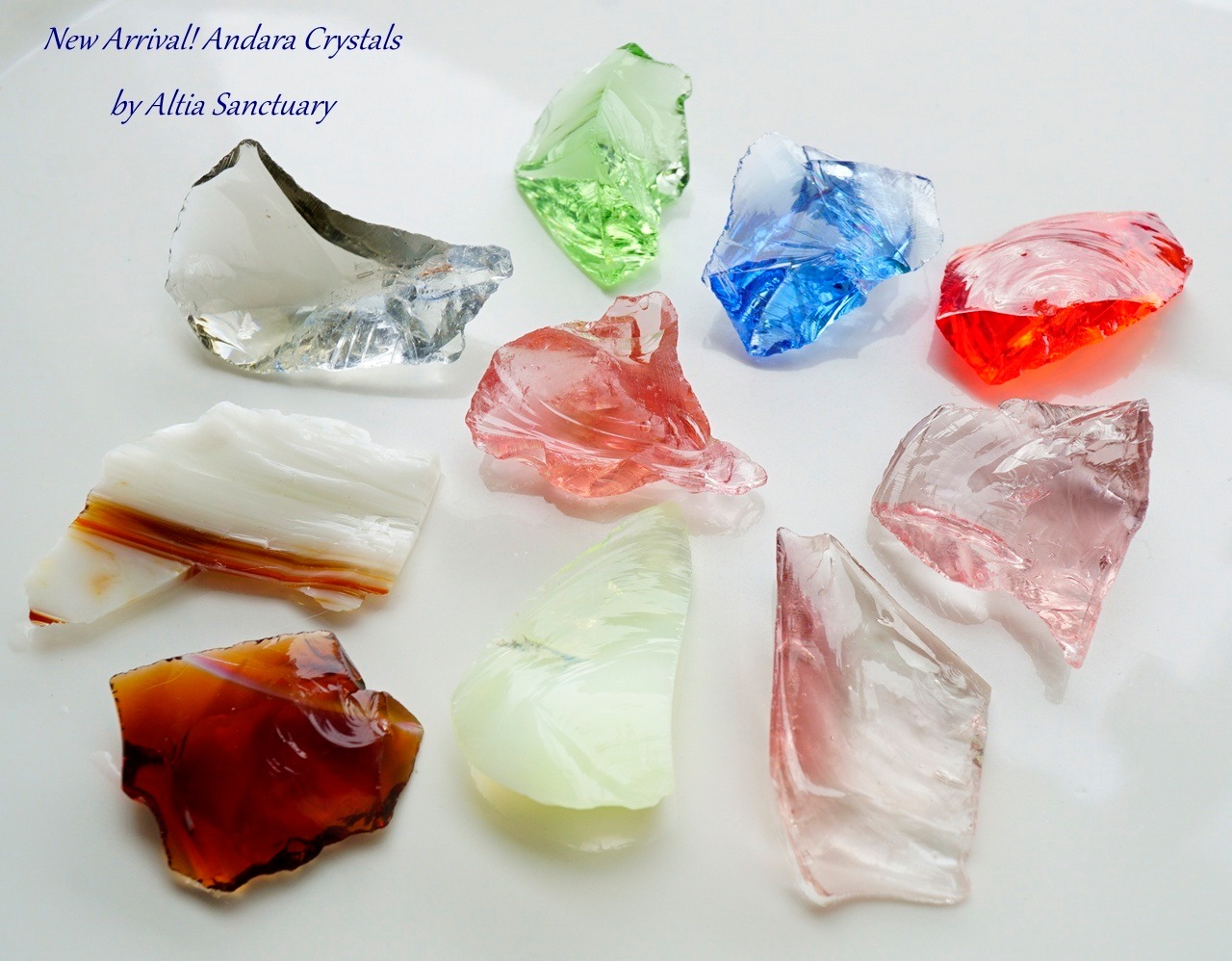 アンダラクリスタルは、アメリカ・シエラネバダ山脈の麓、ネリーランドから採掘される色とりどりの火山性の天然ガラスです。1967年、レディ・ネリー女史により発見され、神聖な石として寺院やピラミッドなどに置かれ、崇められてきました。