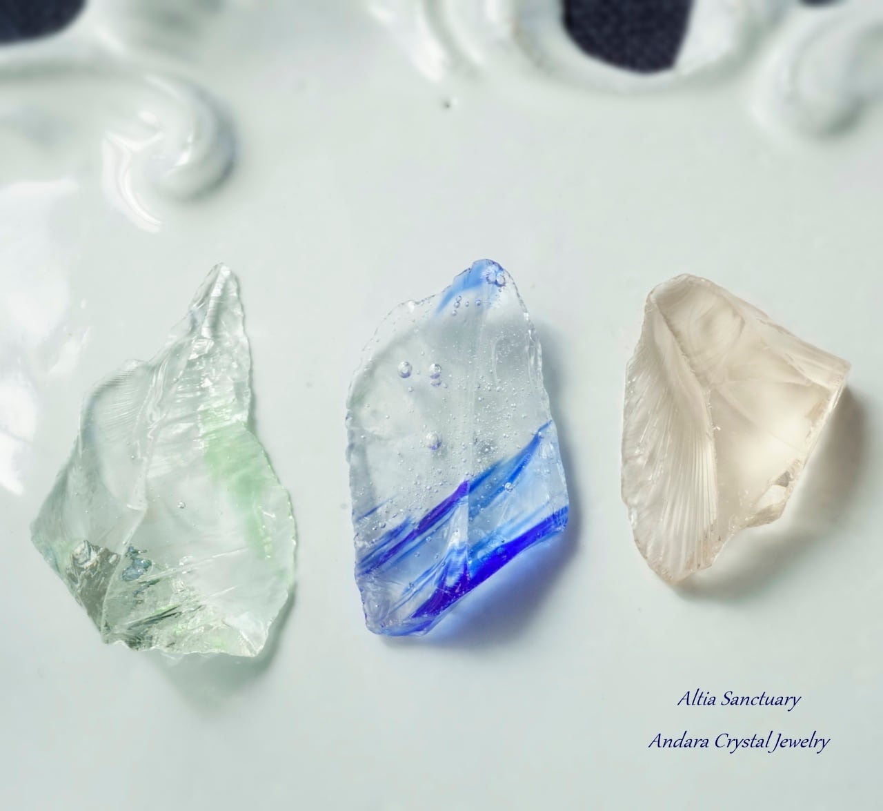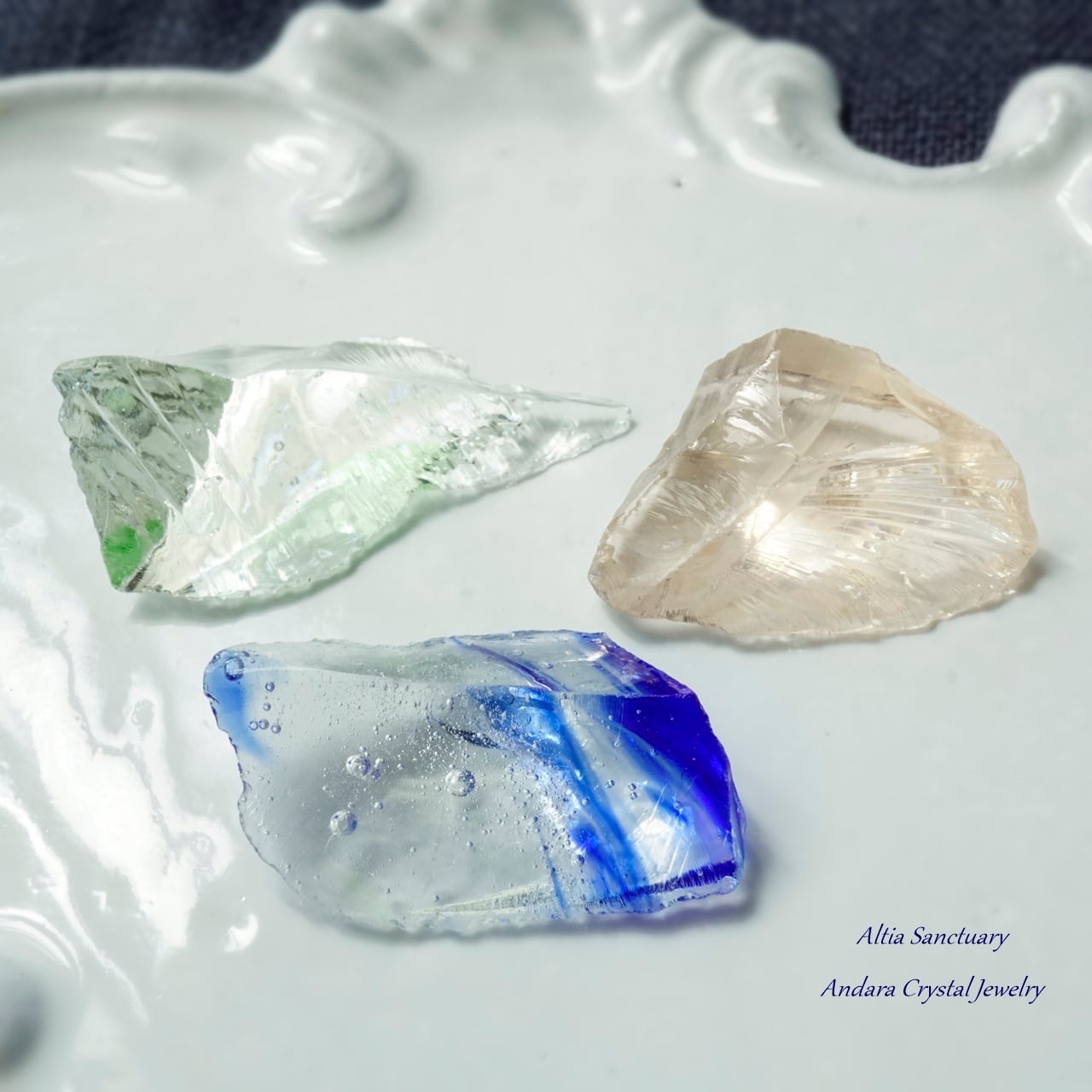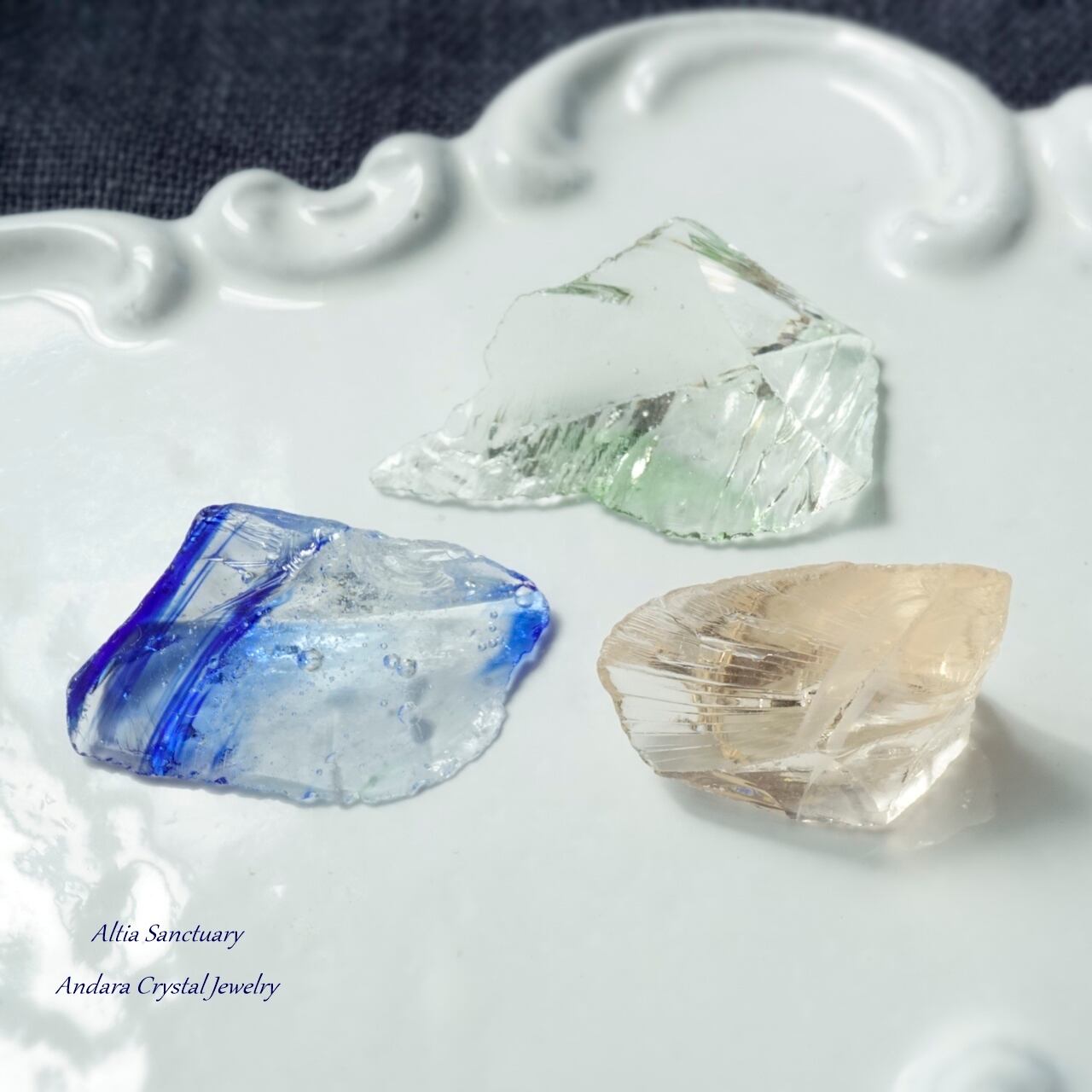レア!アンダラクリスタル3ピースセットC(①エーテルミント/アイス ②サファイア/アイスwithバブル ③セレスチャルハート/エンジェルオーラ)8g-PendantSize-1348