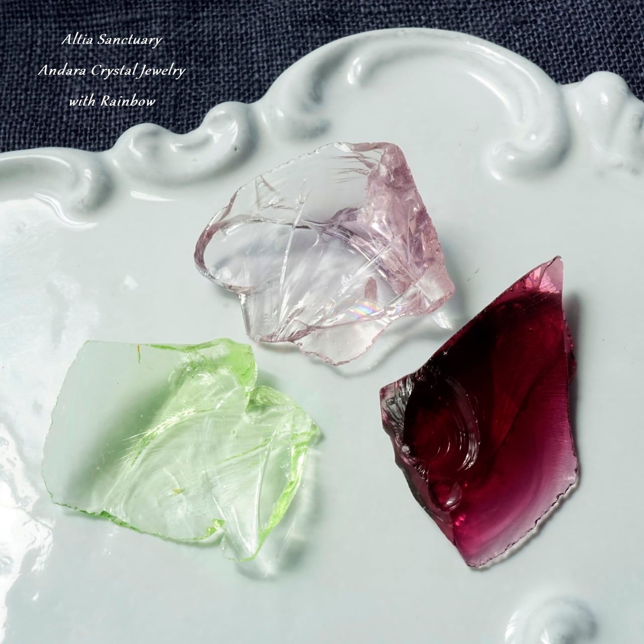 レア!アンダラクリスタル3ピースセットB(①エターナルスプリング ②ローズドフランス虹入り ③ラズベリーレゾナンス)9.5g-PendantSize-1345