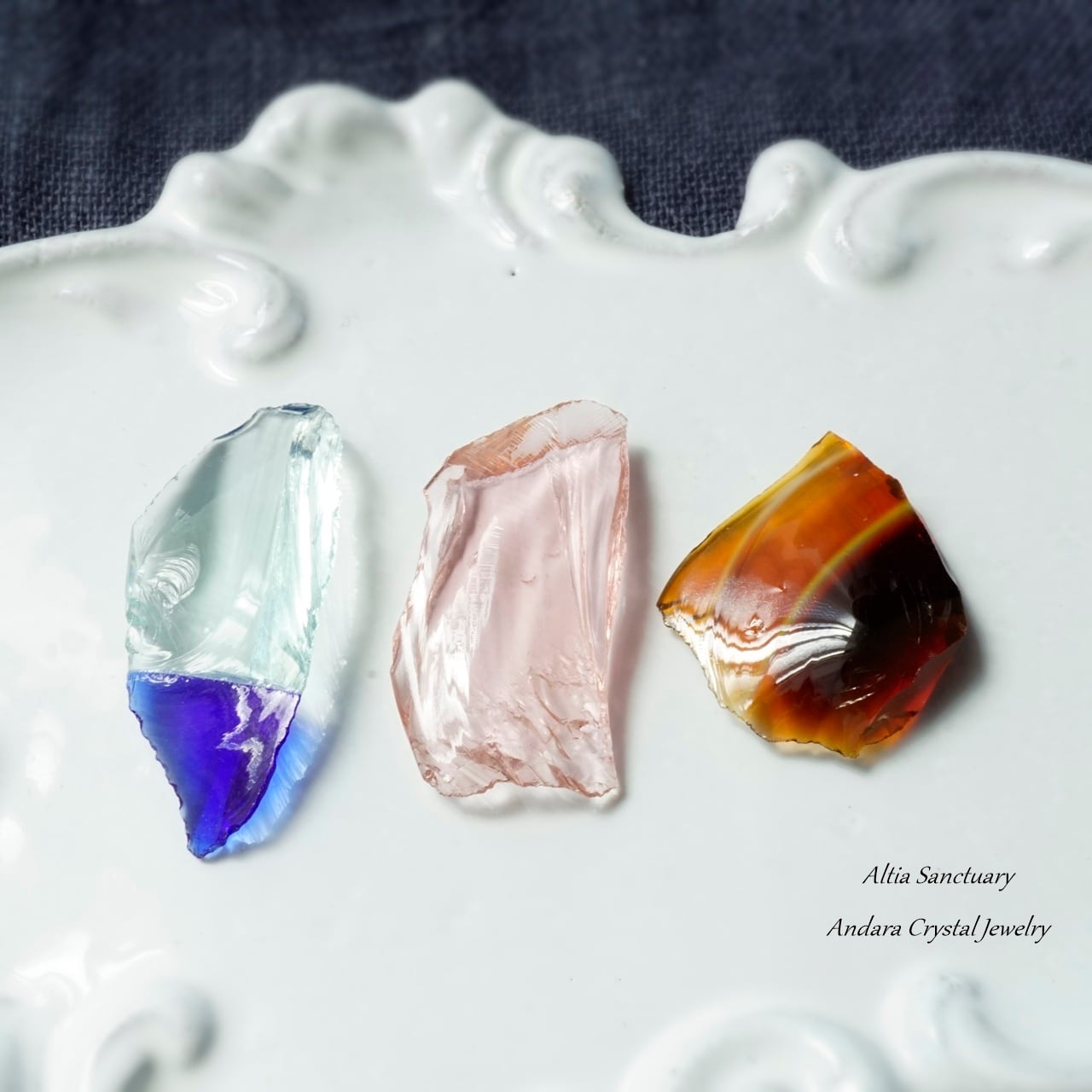 レア!アンダラクリスタル3ピースセットA(①アースシャーマン/ラズベリー/エンジェルオーラ等 ②ローズゴールド ③エーテルミント/タンザナイトファイヤー)8.2g-PendantSize-1347