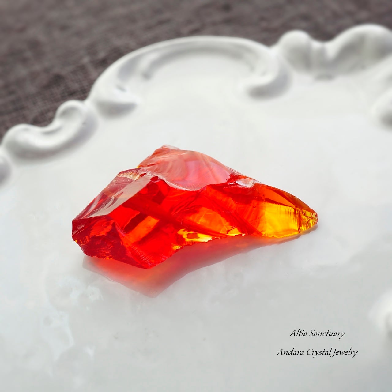 こちらのオレンジレッドのアンダラクリスタルは、クリアな「スカーレットシフト」に「ファイヤーオパール」「エンジェルオーラ」が内包されています。