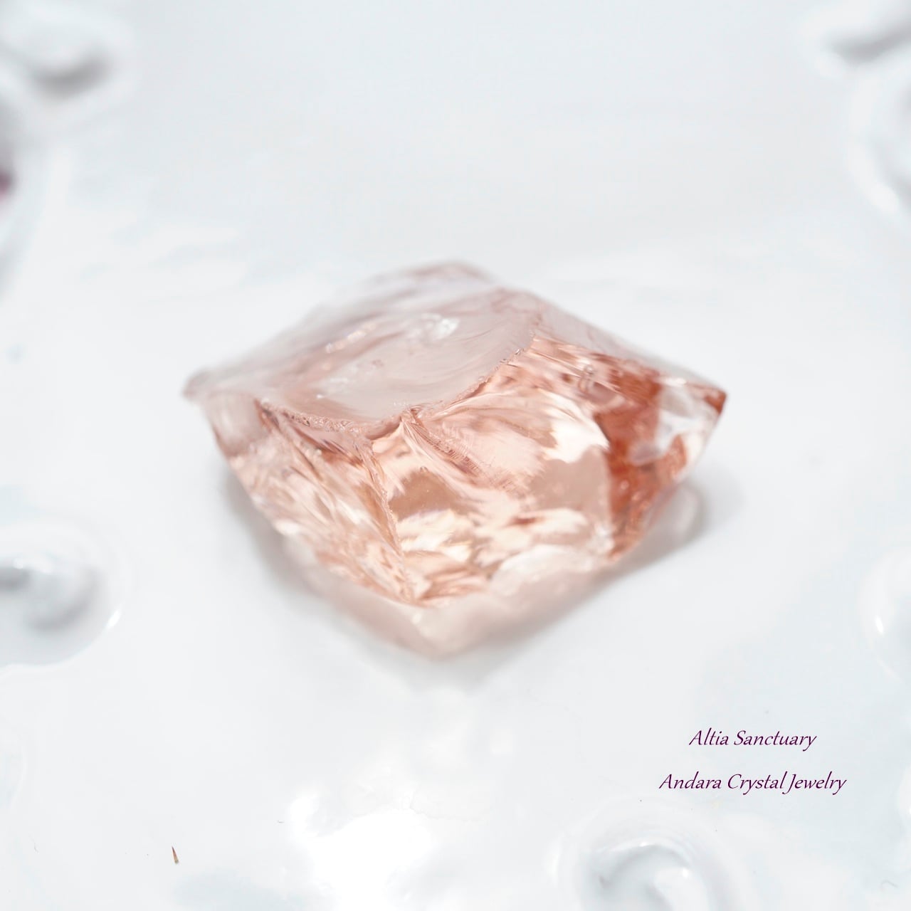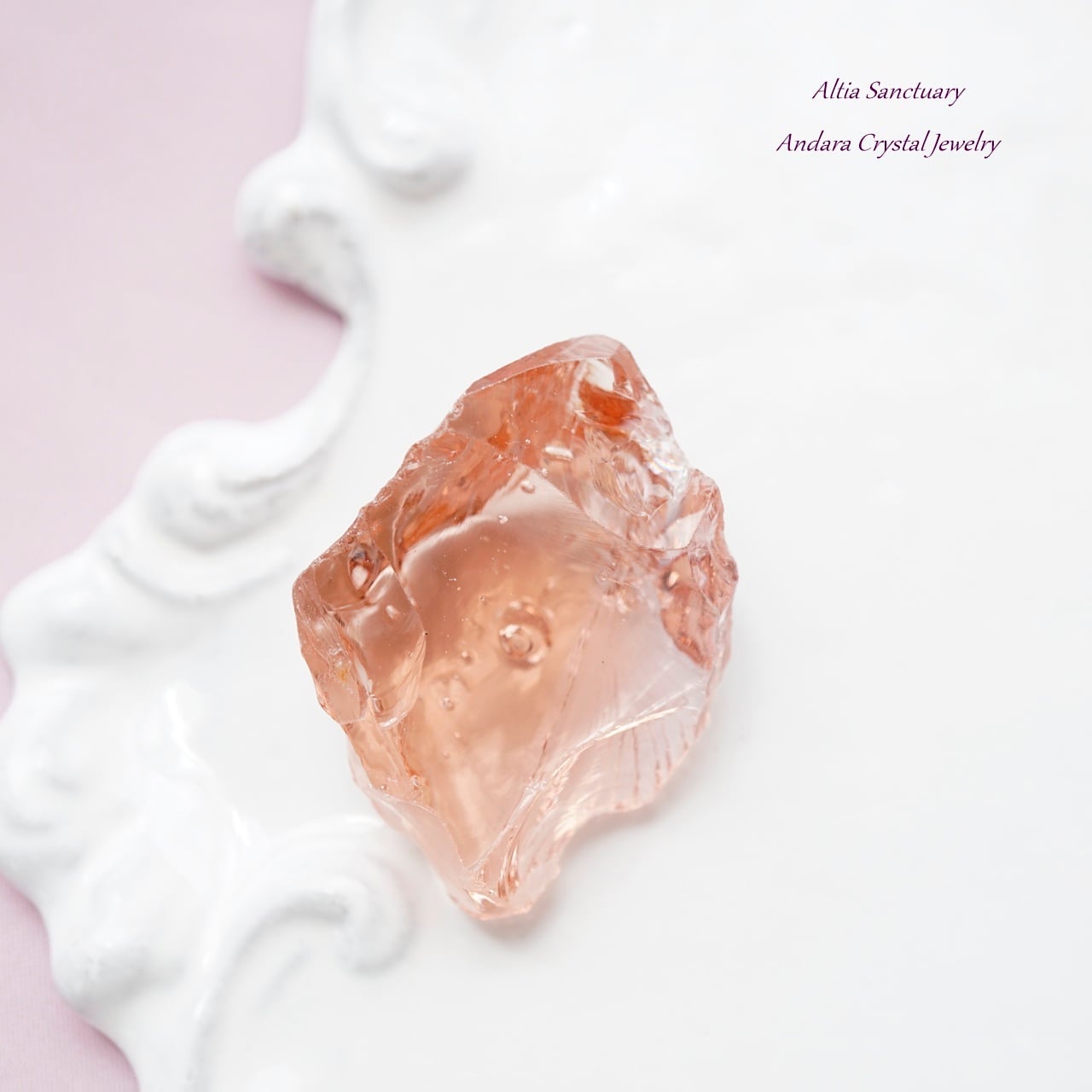 こちらのアンダラクリスタル「セレスチャルハート」withバブルは、ピンク寄りの美しい色合いを持つ原石で、内部には神秘的なバブルが見られます。深い愛の優しさや心の中に温かみを感じさせる魅惑的なセレスチャルハートです。重さは11gのペンダントにしても丁度良いサイズです。