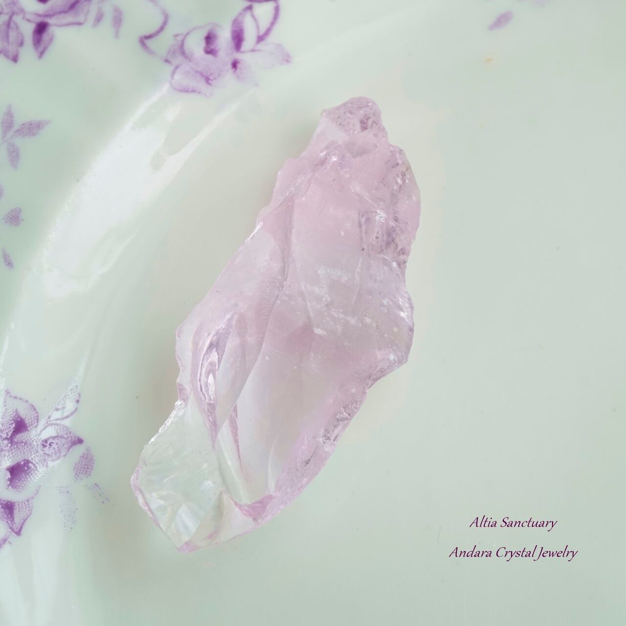 こちらは、濃淡のBanded「HGWピンク」に「アセンダントライラック」が縞模様に入ったバイカラーが魅力の原石です。繊細なピンクとエレガントなライラックが優美に融合し、持つ人に特別なエネルギーを与えてくれることでしょう。重さは11.9gの扱いやすいサイズです。