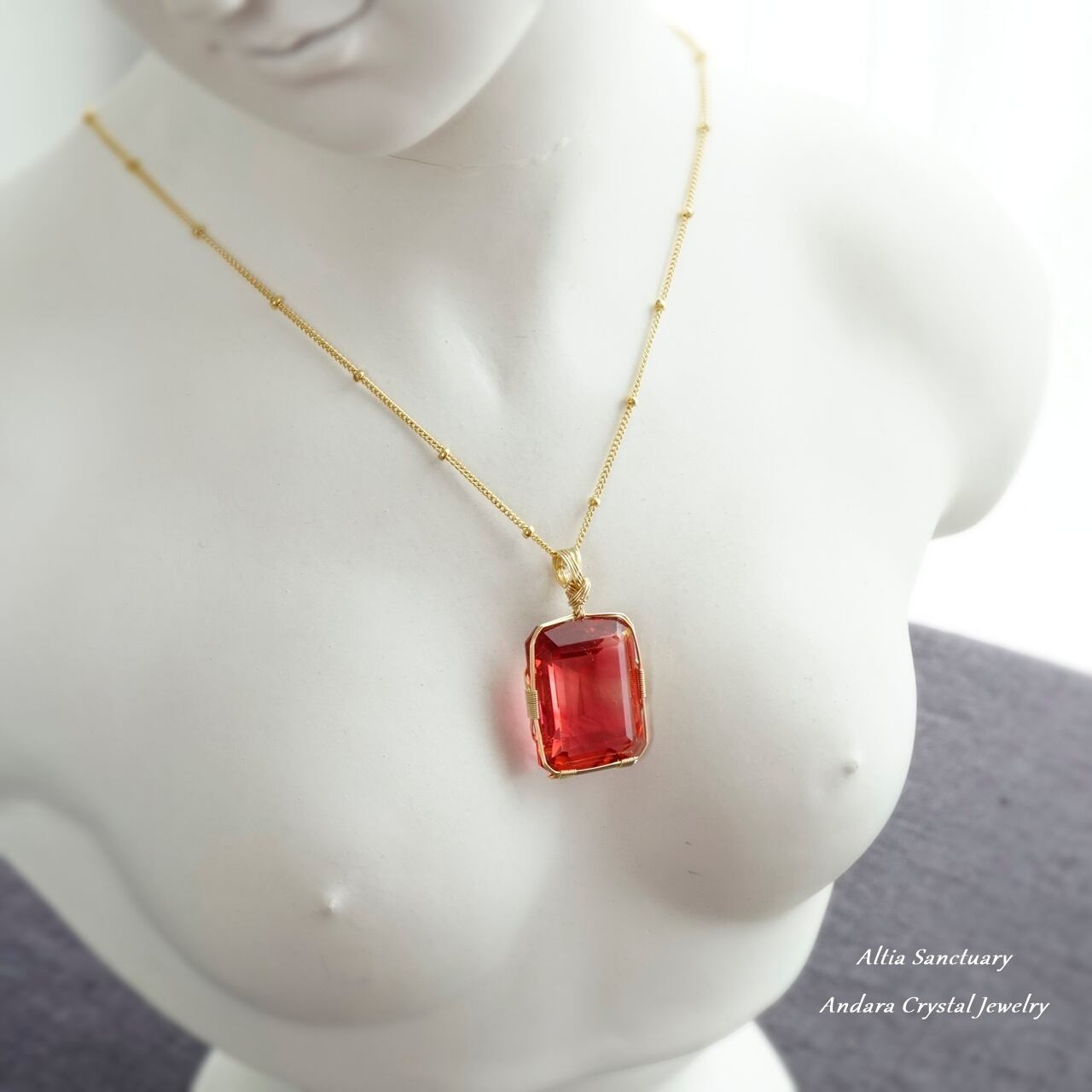 エメラルドカットに研磨加工し、女神巻き®ペンダントに仕立てました。