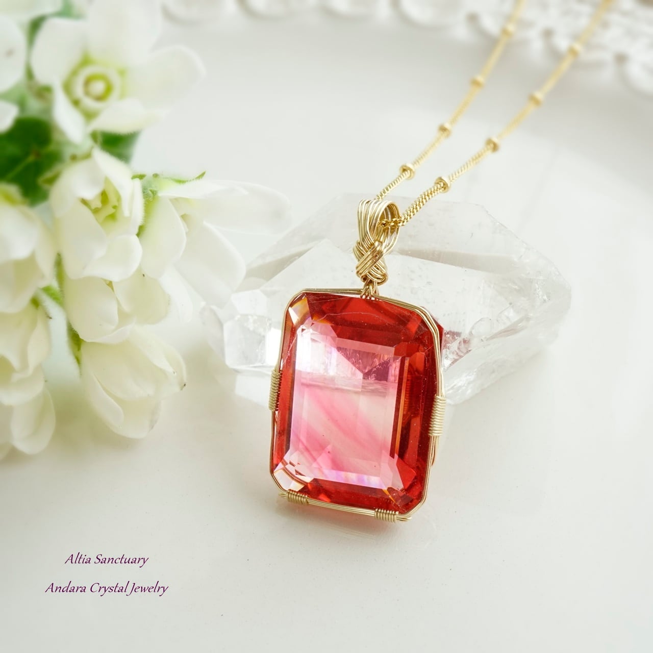 エメラルドカット女神巻きペンダントトップ~アンダラクリスタル Banded(ソフィアウィズダムハート)-1404