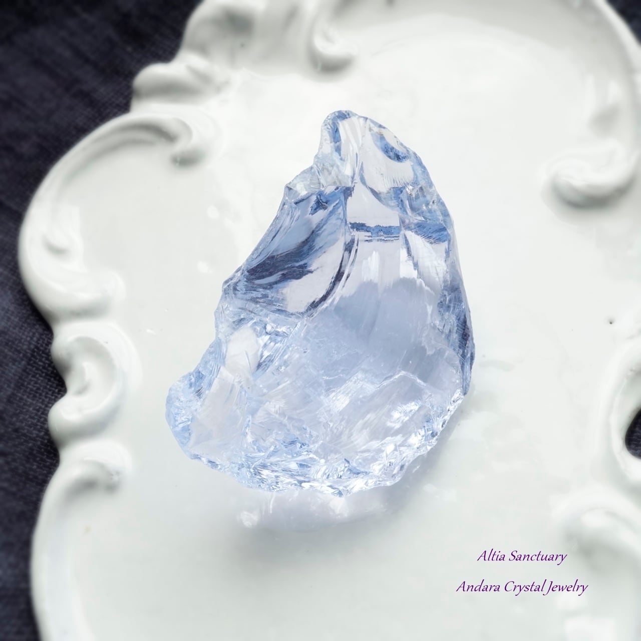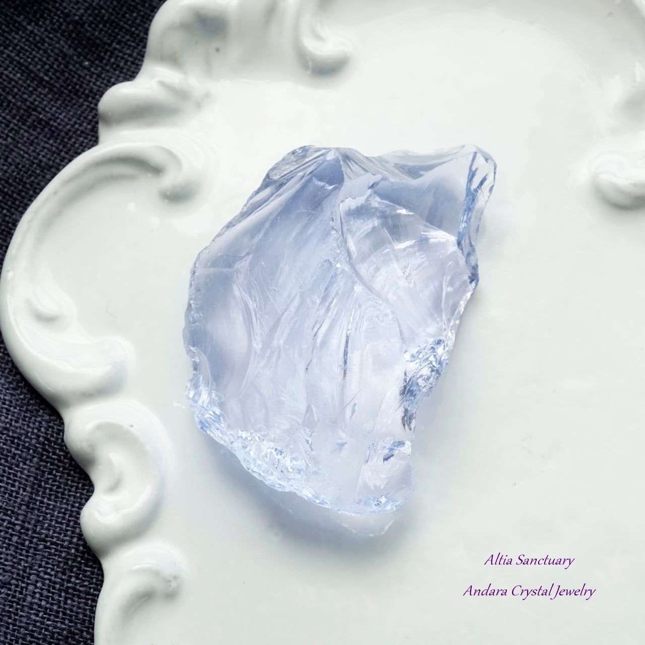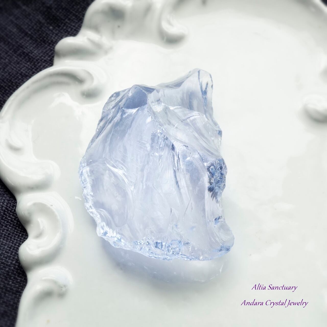 淡いすみれ色の「アセンダント ライラック」です。青みがあり清らかな印象のライラックです。艶、きらめき、波紋が見られる美しいアンダラクリスタルです。27g程のやや大きめサイズになります。