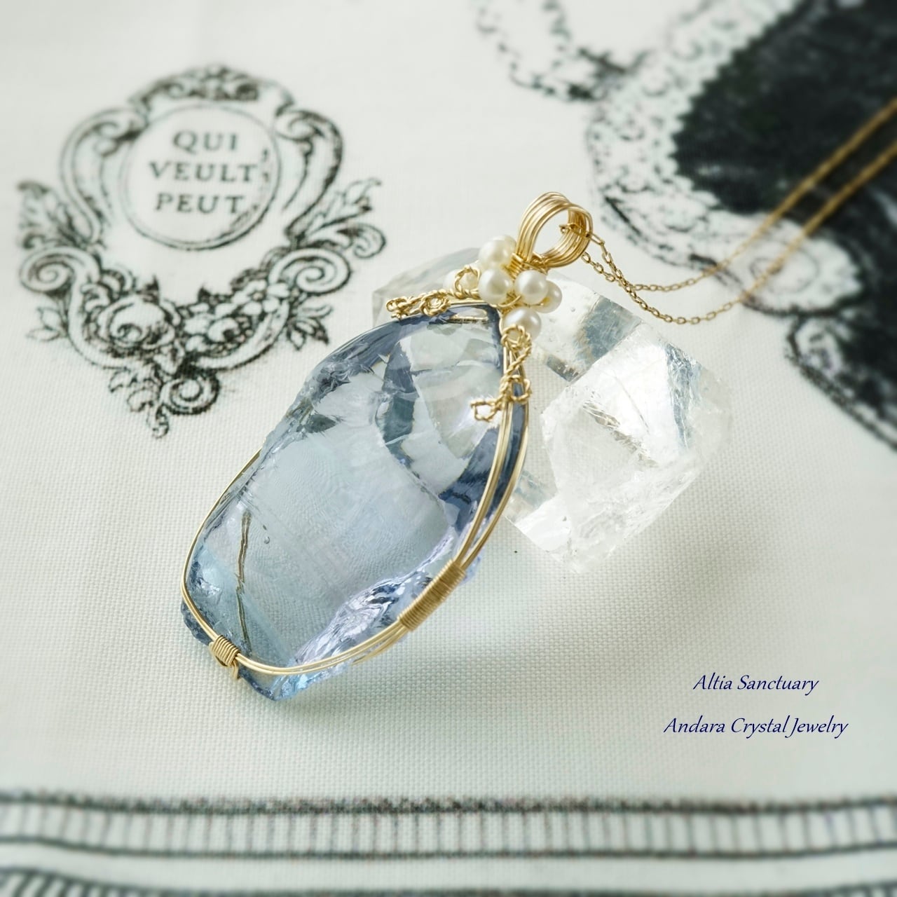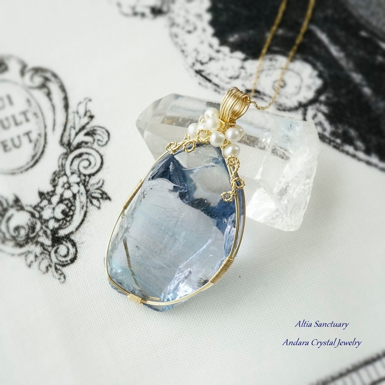 【O様オーダー】マルチ アンダラクリスタル(アダマンティン~神の超越/ヴァイオレット/アズールエリュシオン)淡水パール装飾デザインペンダントトップ-1429