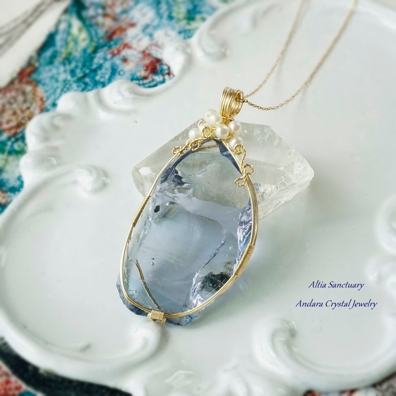 アンダラクリスタルは、黒曜石(オブシディアン)に似たガラス質で、ゴールド・シルバー・イリジウム・ロジウム・クロミニウム・プラチナなどの単原子成分が含まれており、レインボーの7色以上の美しいカラーを放つ魅力を持っています。