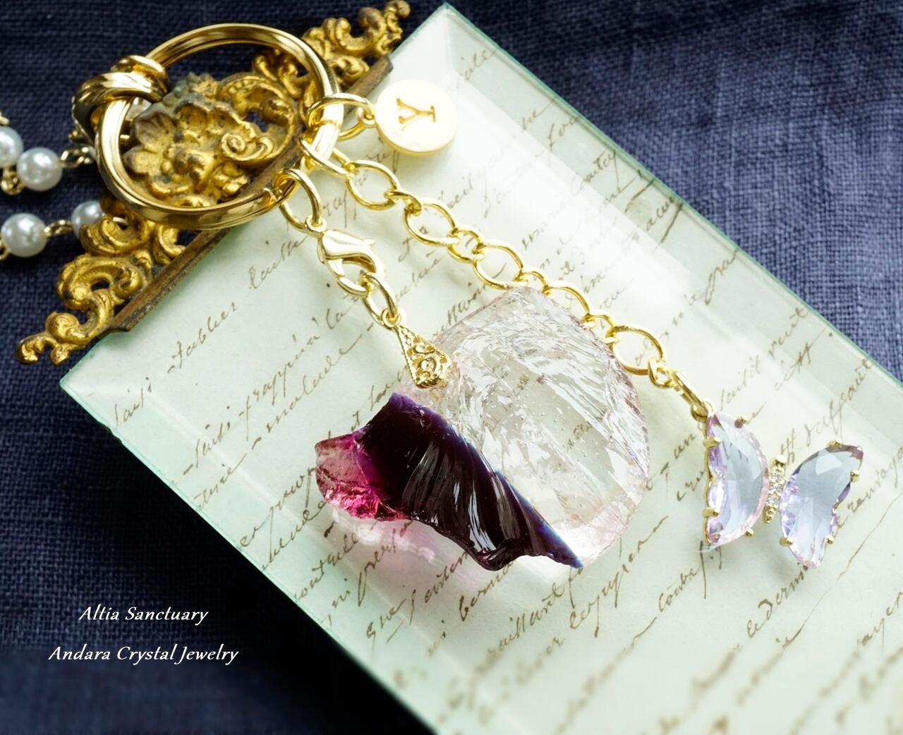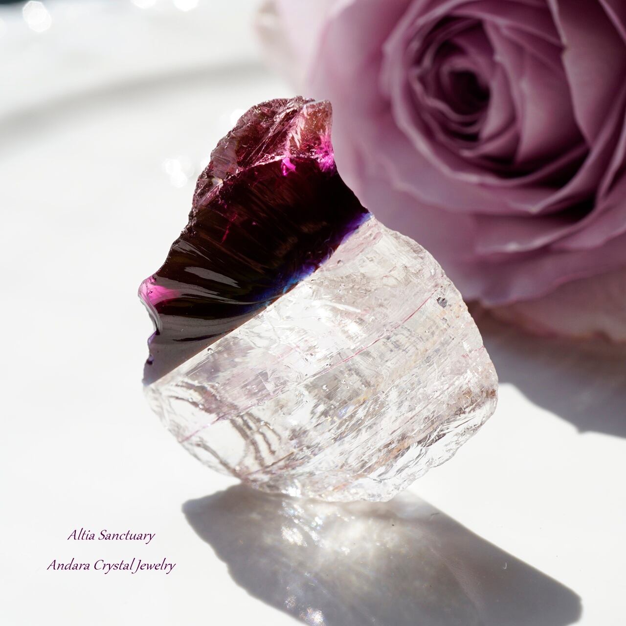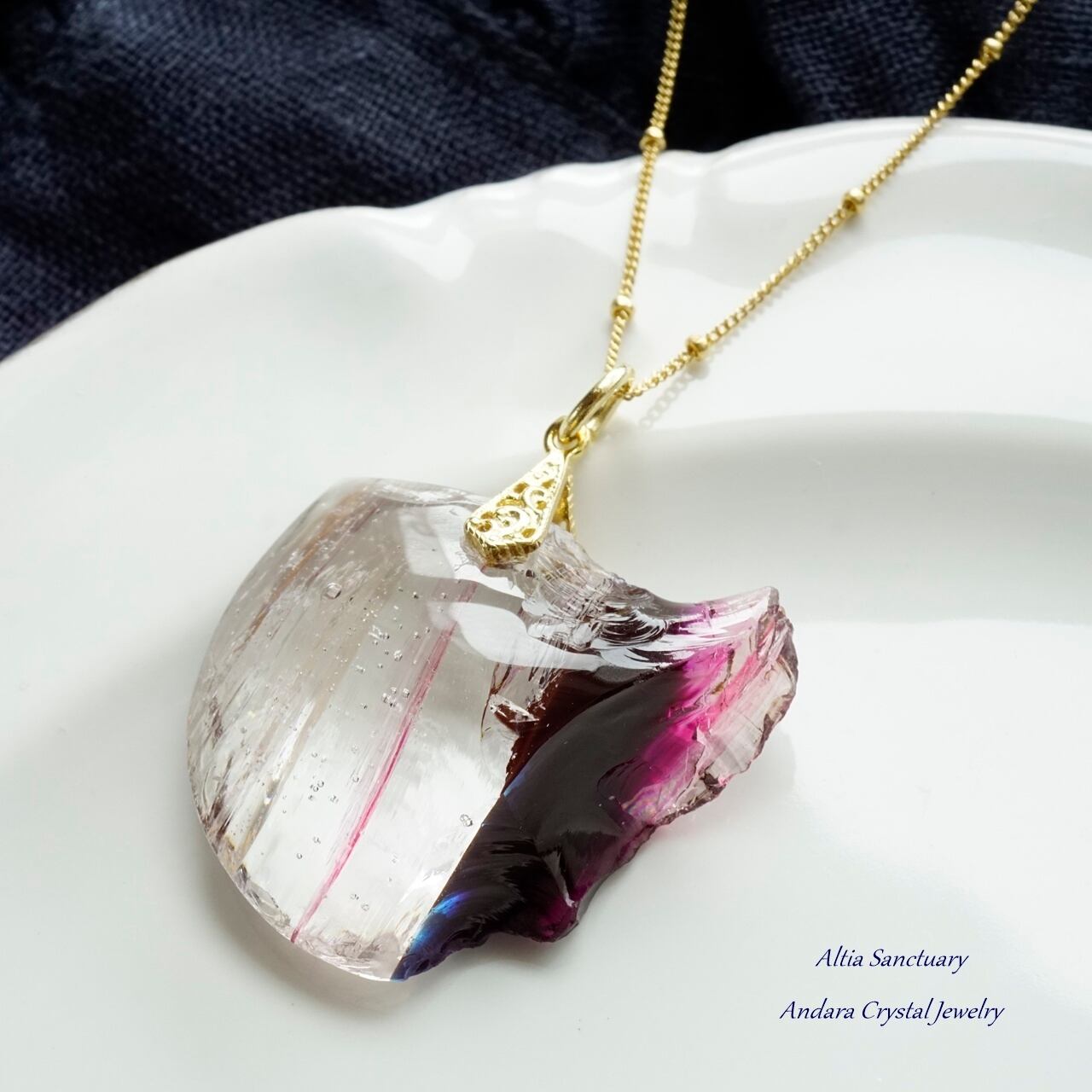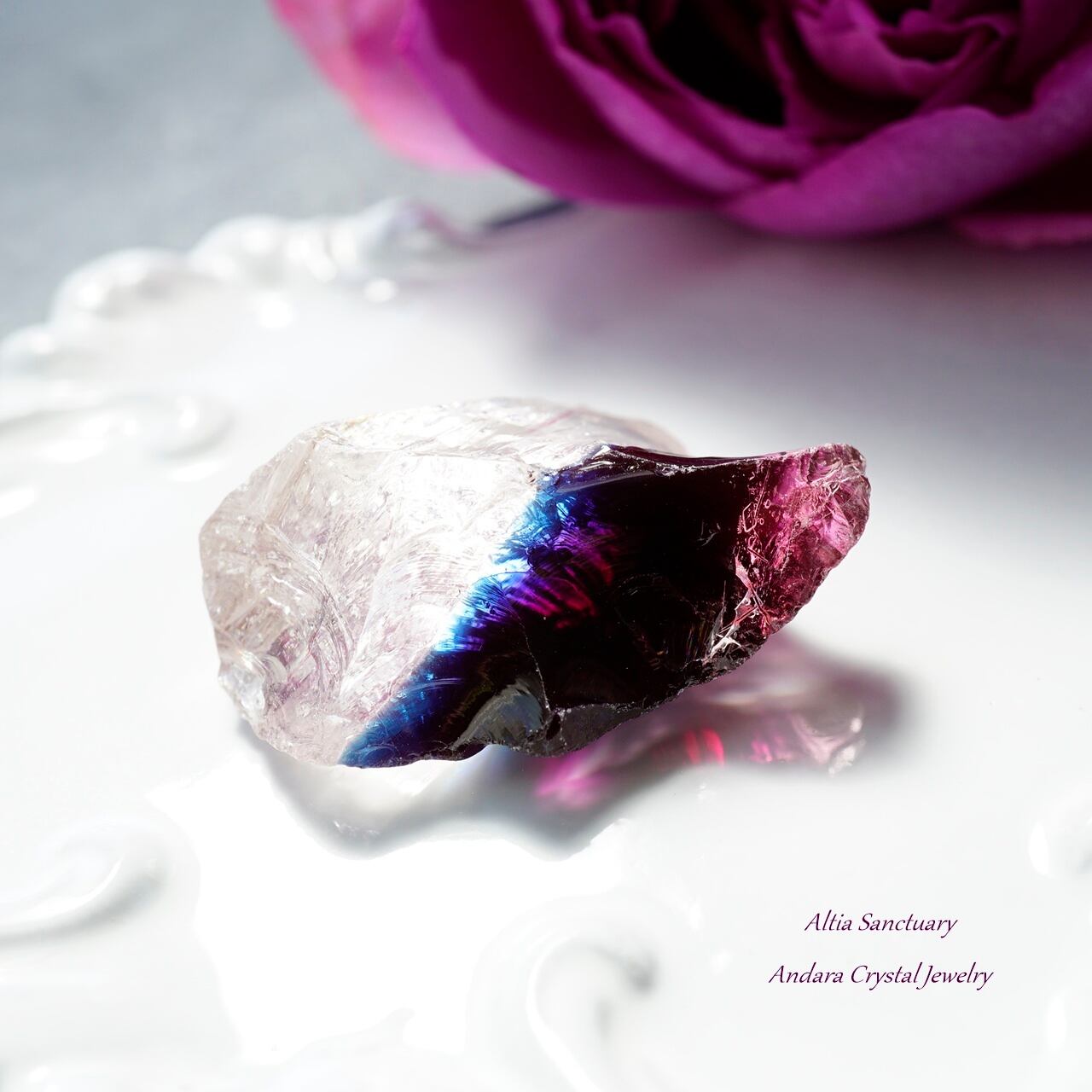 こちらのアンダラは、ピンクの色調とゴールドのハイライトを持つ「ソフィア」に、「コスミックアイス」「スターライトサファイア」や「ソブリンアメジスト」等、様々な特性が含まれる美しい希少なアンダラクリスタルです。