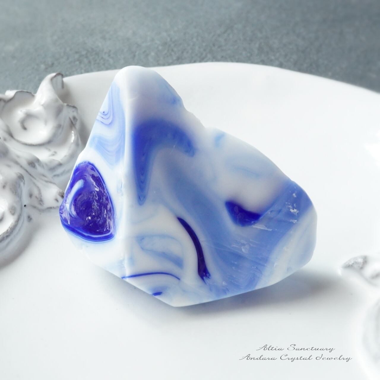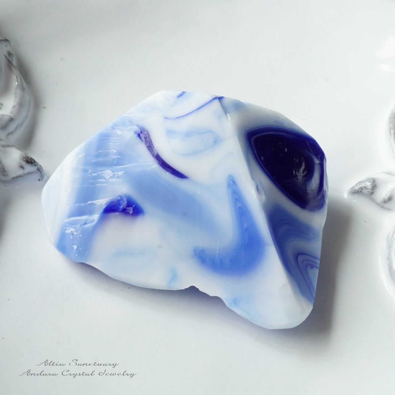 パステルアイスにサファイヤブルーとタンザナイトファイヤーがユニークな模様となって入ったとても個性的なアンダラクリスタルです。