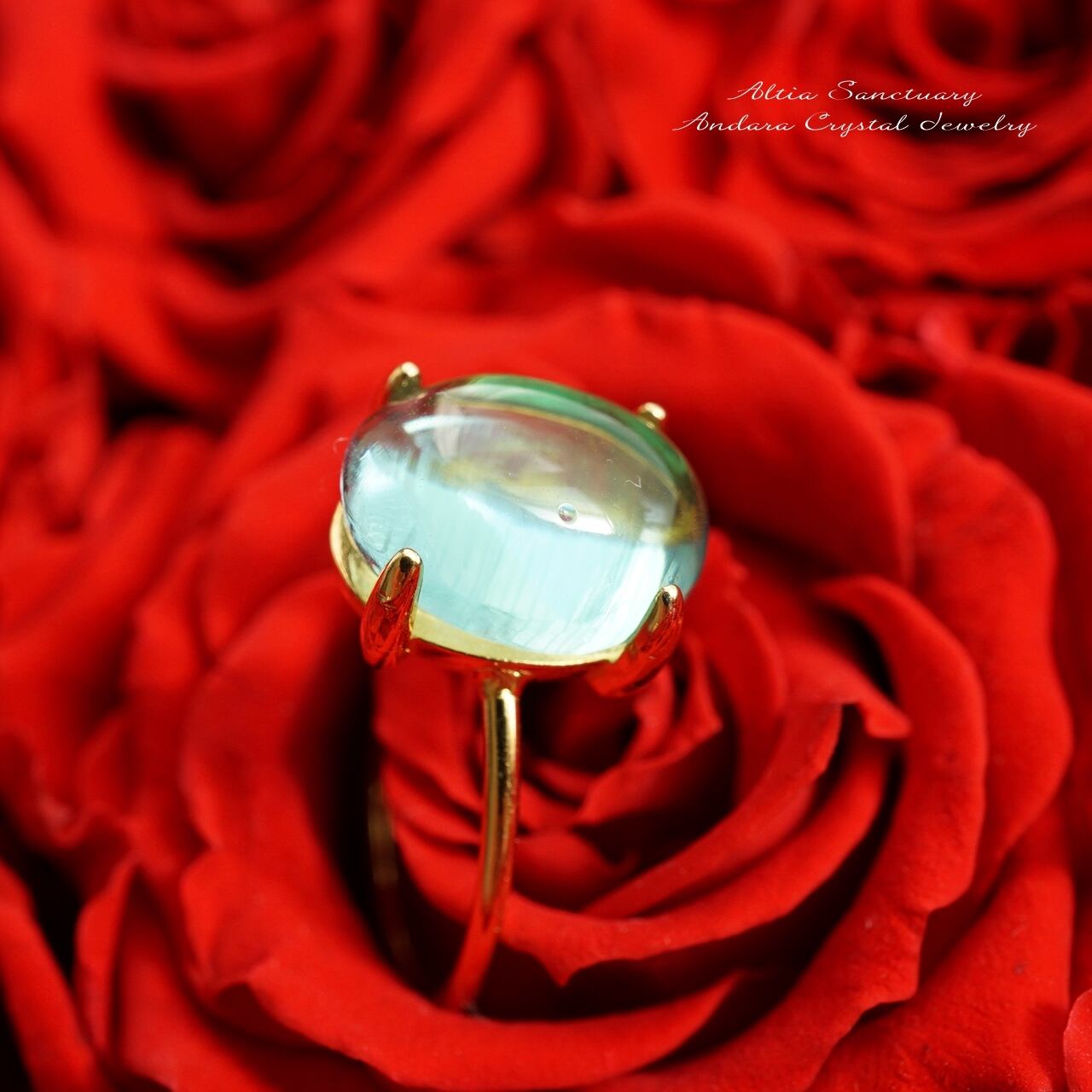アンダラクリスタル(イナンナ)のオーバル型カボション1粒のシンプルな爪留めリングです。