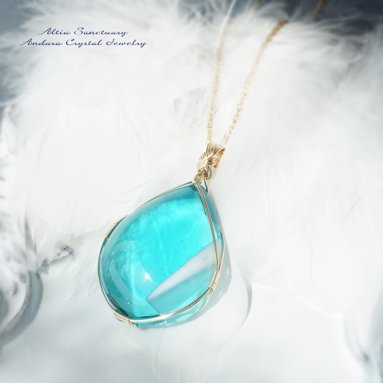 レア!アンダラクリスタル(エレクトリックブルー/パステルアイス)しずく 女神巻き®ペンダントトップ
