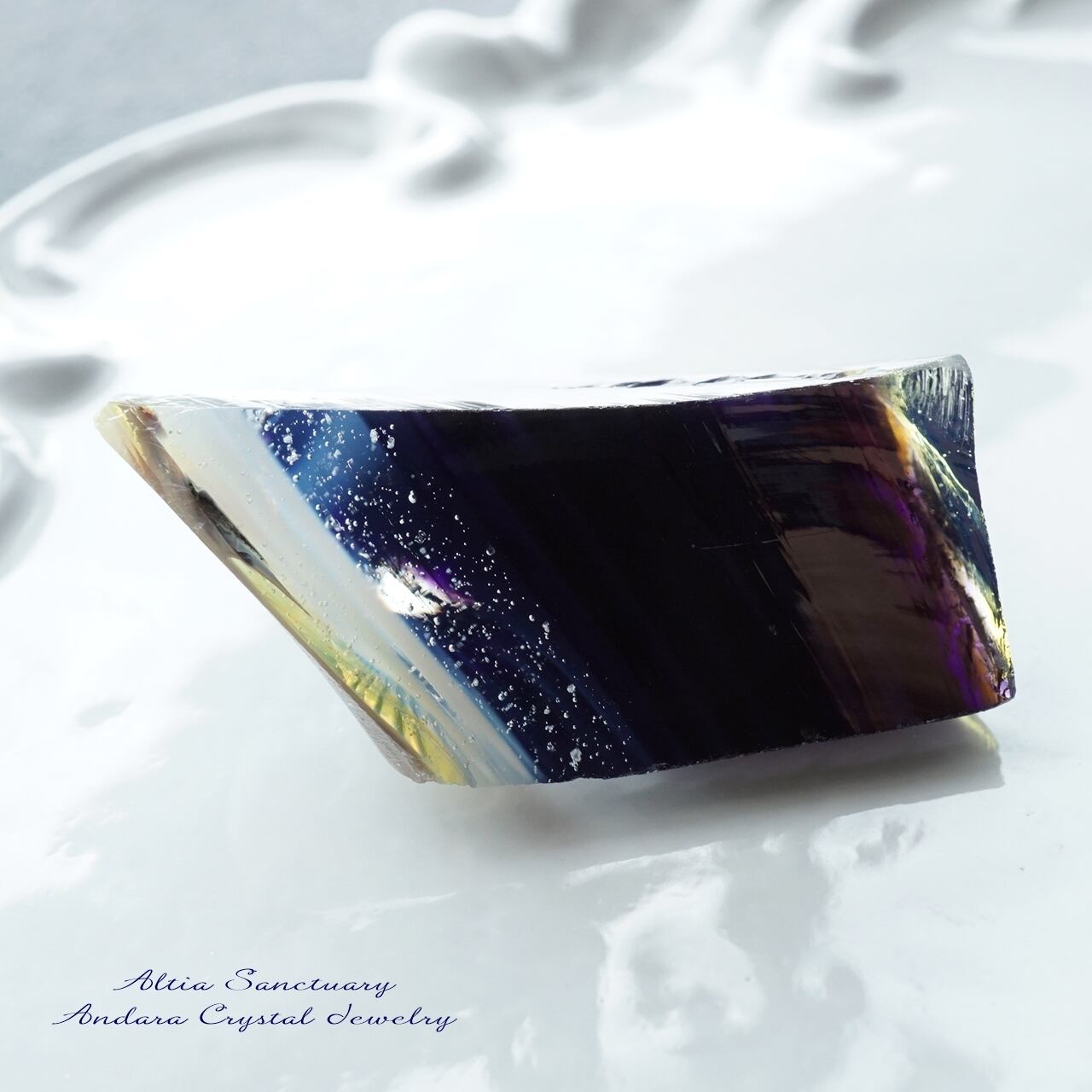 ブラック×バイオレット×レディネリー×ホワイト×イエロー×ゴールド×ブラウンなどが見られます。微細な粒たちが、夜空に浮かぶ星々のようで、宇宙を感じられる神秘的で希少なアンダラクリスタルです。