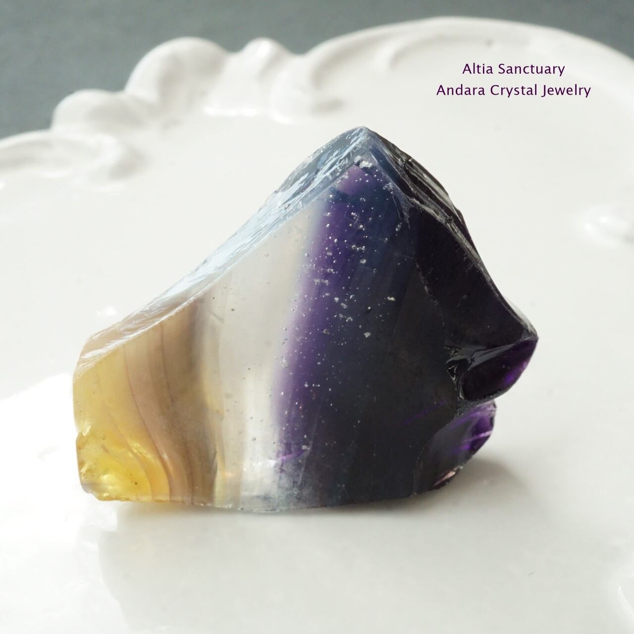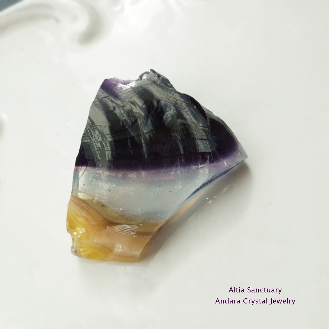 アンダラクリスタルは、黒曜石(オブシディアン)に似たガラス質で、ゴールド・シルバー・イリジウム・ロジウム・クロミニウム・プラチナなど単、原子の成分が含まれているためレインボーの7色 各チャクラの7色以上の多様な美しいカラーが存在します。