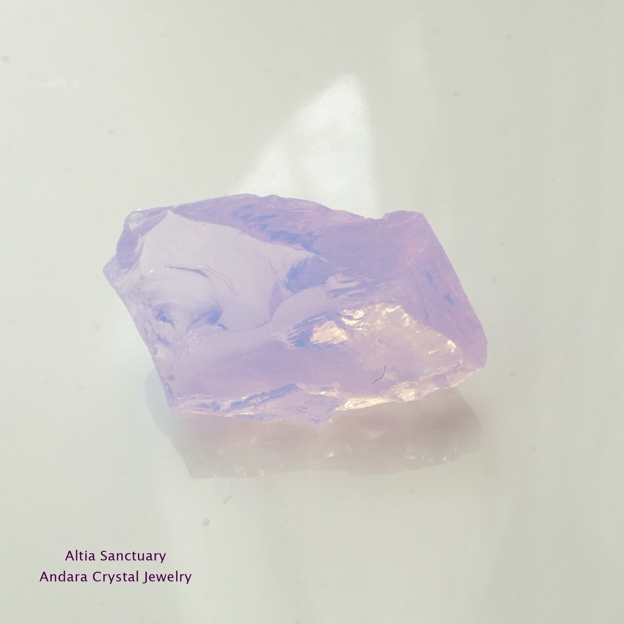 アンダラクリスタルは、黒曜石(オブシディアン)に似たガラス質で、ゴールド・シルバー・イリジウム・ロジウム・クロミニウム・プラチナなど単原子の成分が含まれているためレインボーの7色