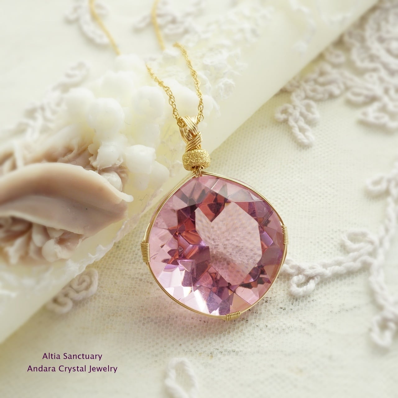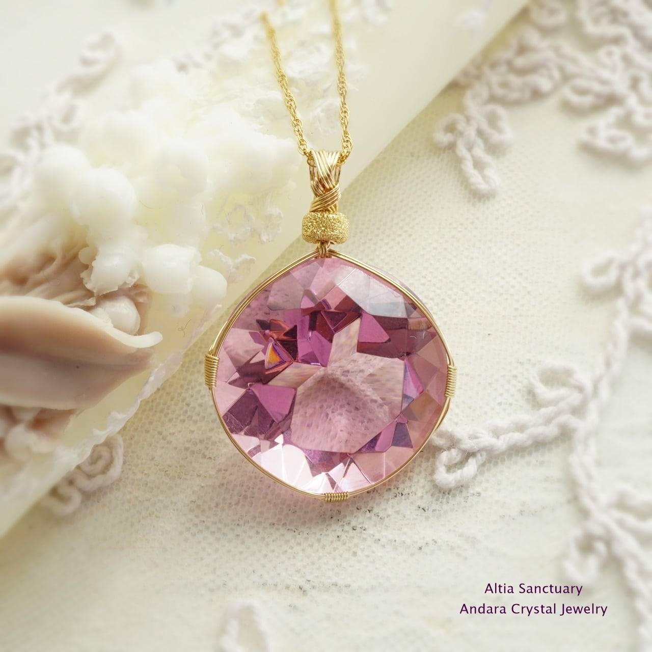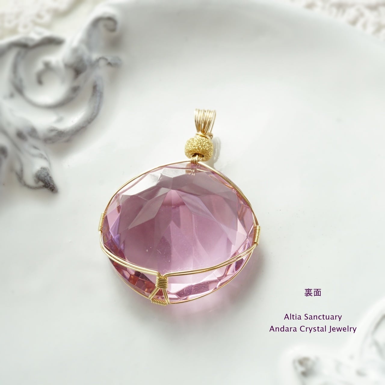アンダラクリスタル(HGWピンク)ダイヤモンドカット女神巻き®ペンダントトップ