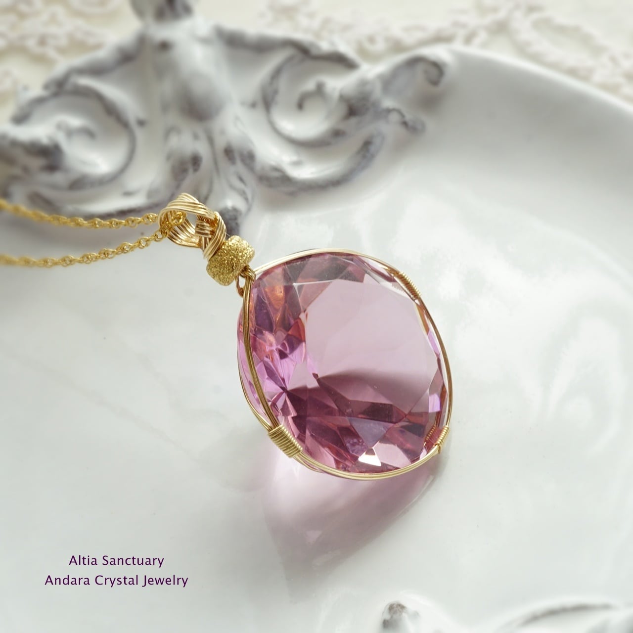 美しい濃いピンク色のアンダラクリスタル「HGWピンク」のダイヤモンドカット女神巻き®ペンダントトップです。