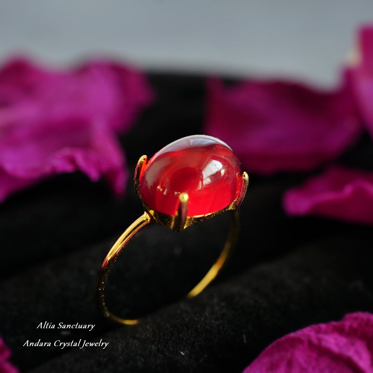 アンダラクリスタル(ラズベリーレゾナンス)のオーバルカボション1粒 シンプルな爪留めリングです。石は横タイプになります。